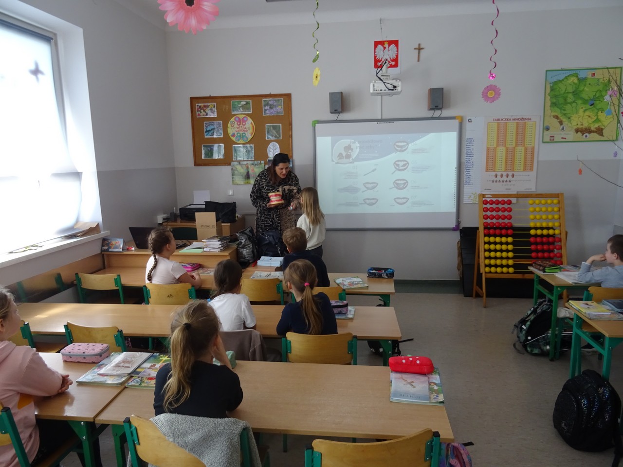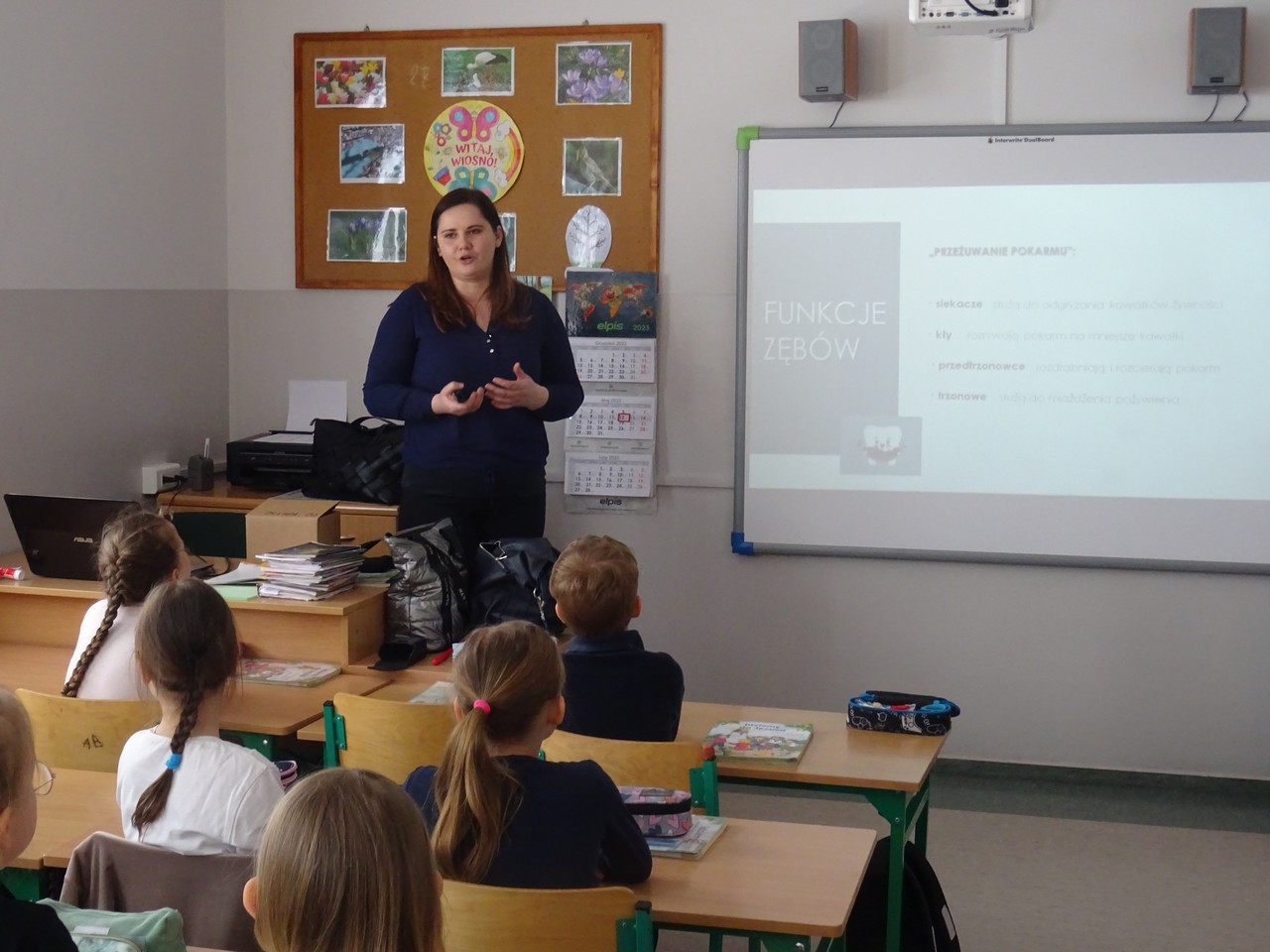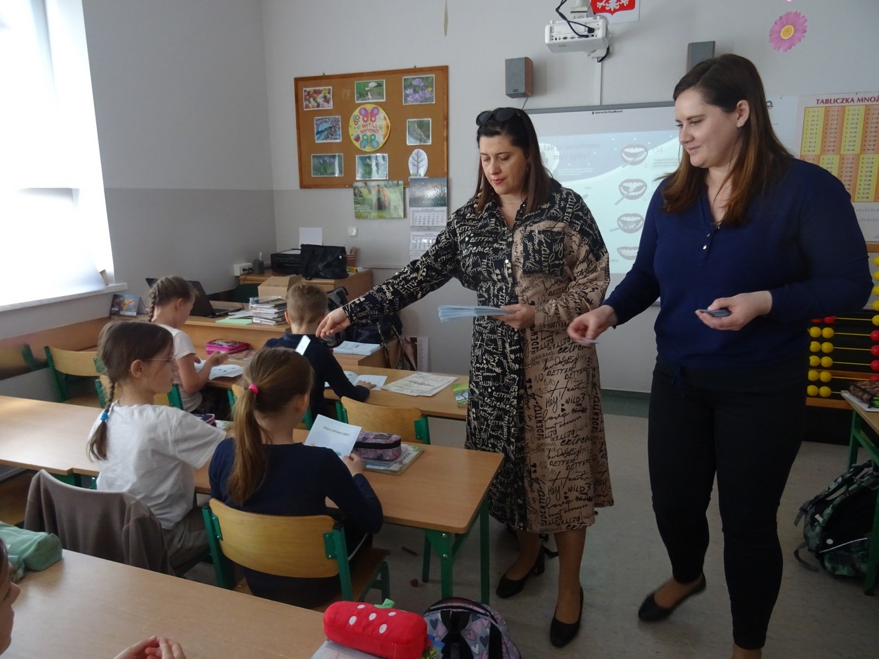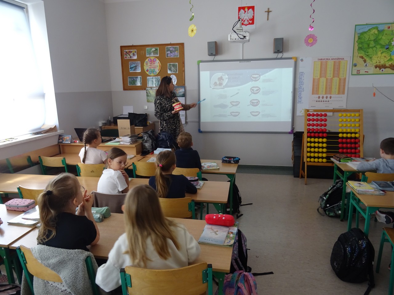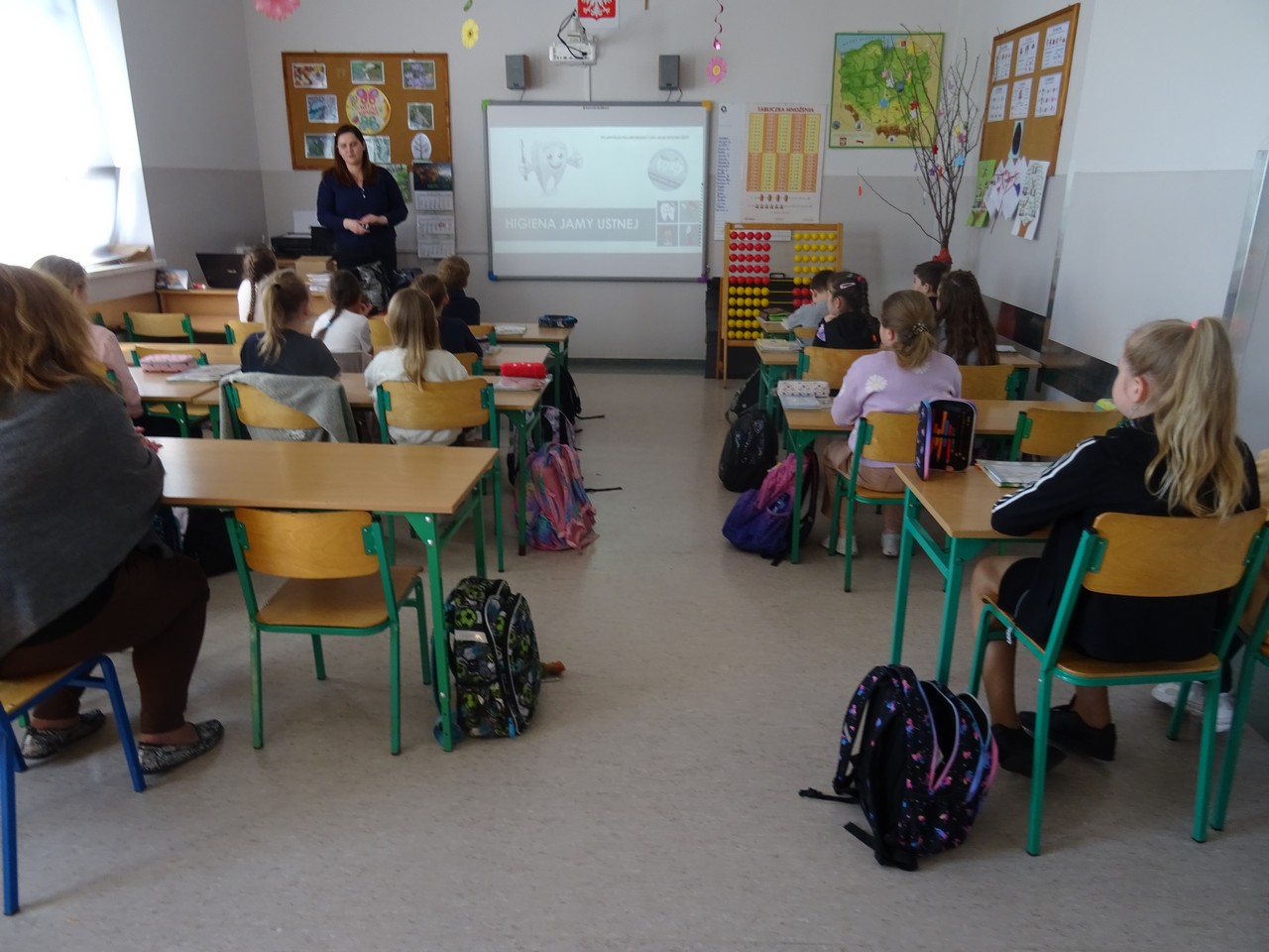 12 maja 2023 r. pracownicy Sekcji Oświaty Zdrowotnej i Promocji Zdrowia Powiatowej Stacji Sanitarno-Epidemiologicznej w Kaliszu Agnieszka Stępniak i Joanna Jaroma-Woźniak w ramach wojewódzkiego projektu edukacyjnego „Mam zdrowe zęby!” przeprowadzili pogadankę z instruktażem prawidłowego mycia zębów wśród uczniów klasy II Szkoły Podstawowej w Jankowie Pierwszym.