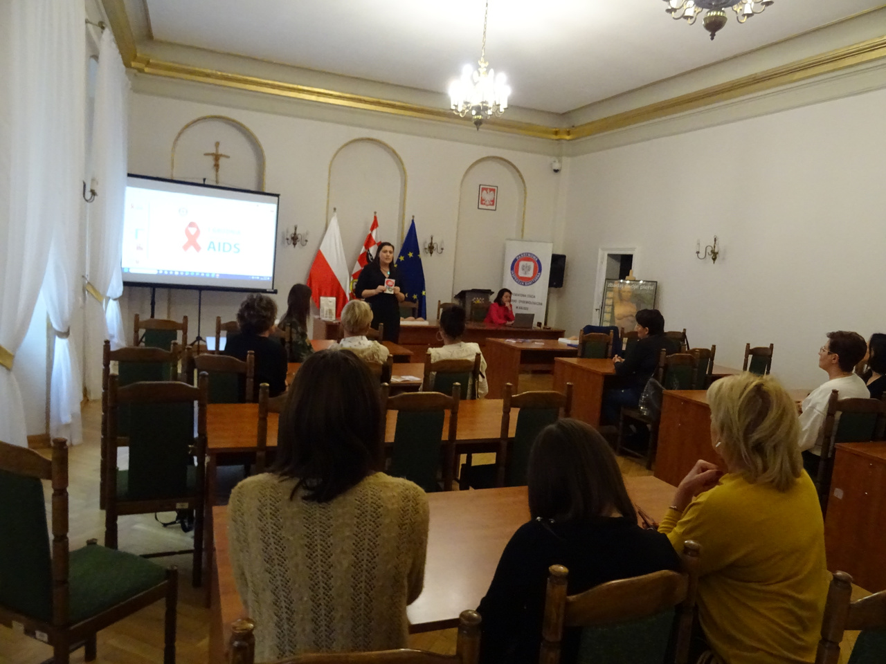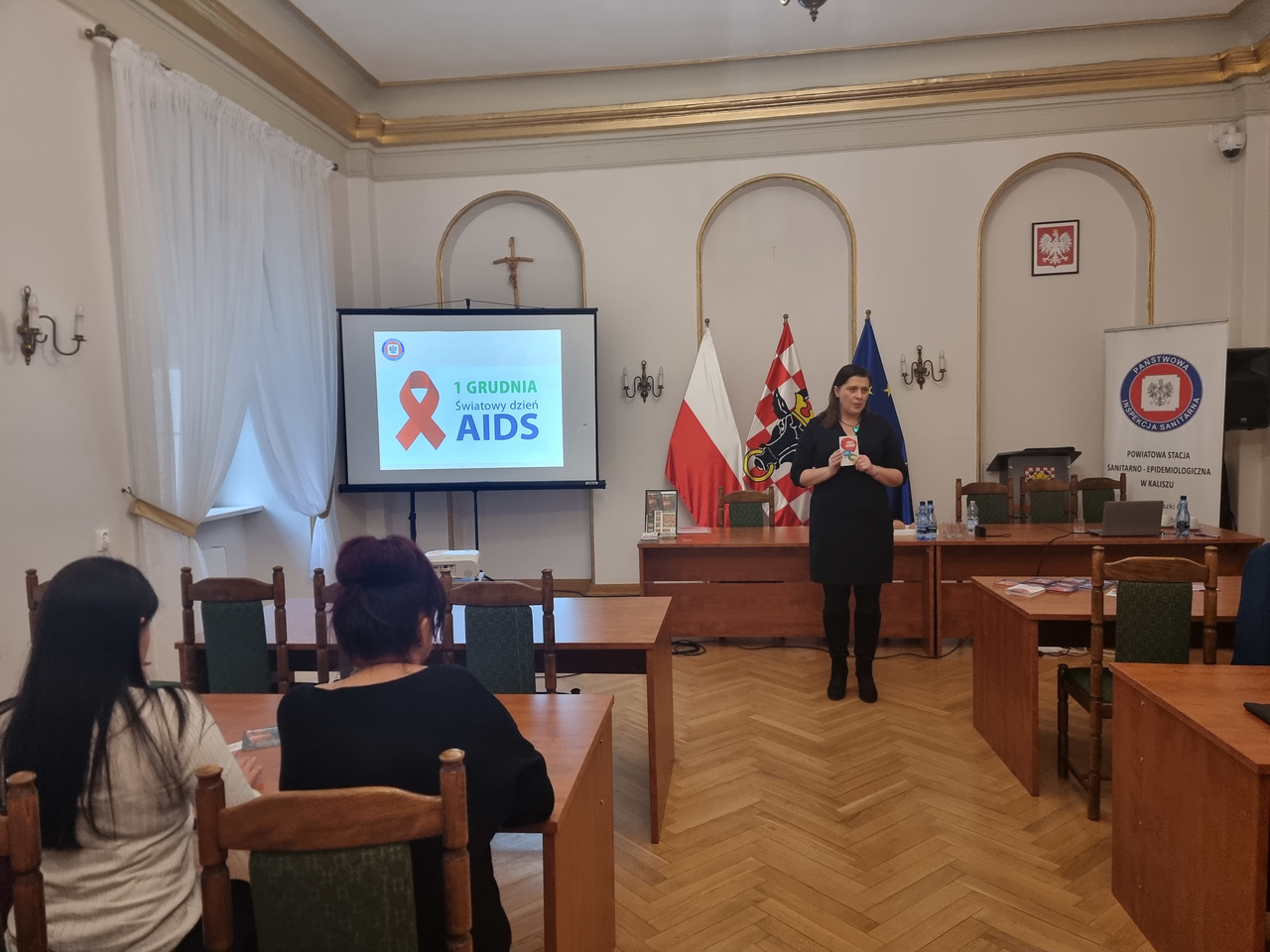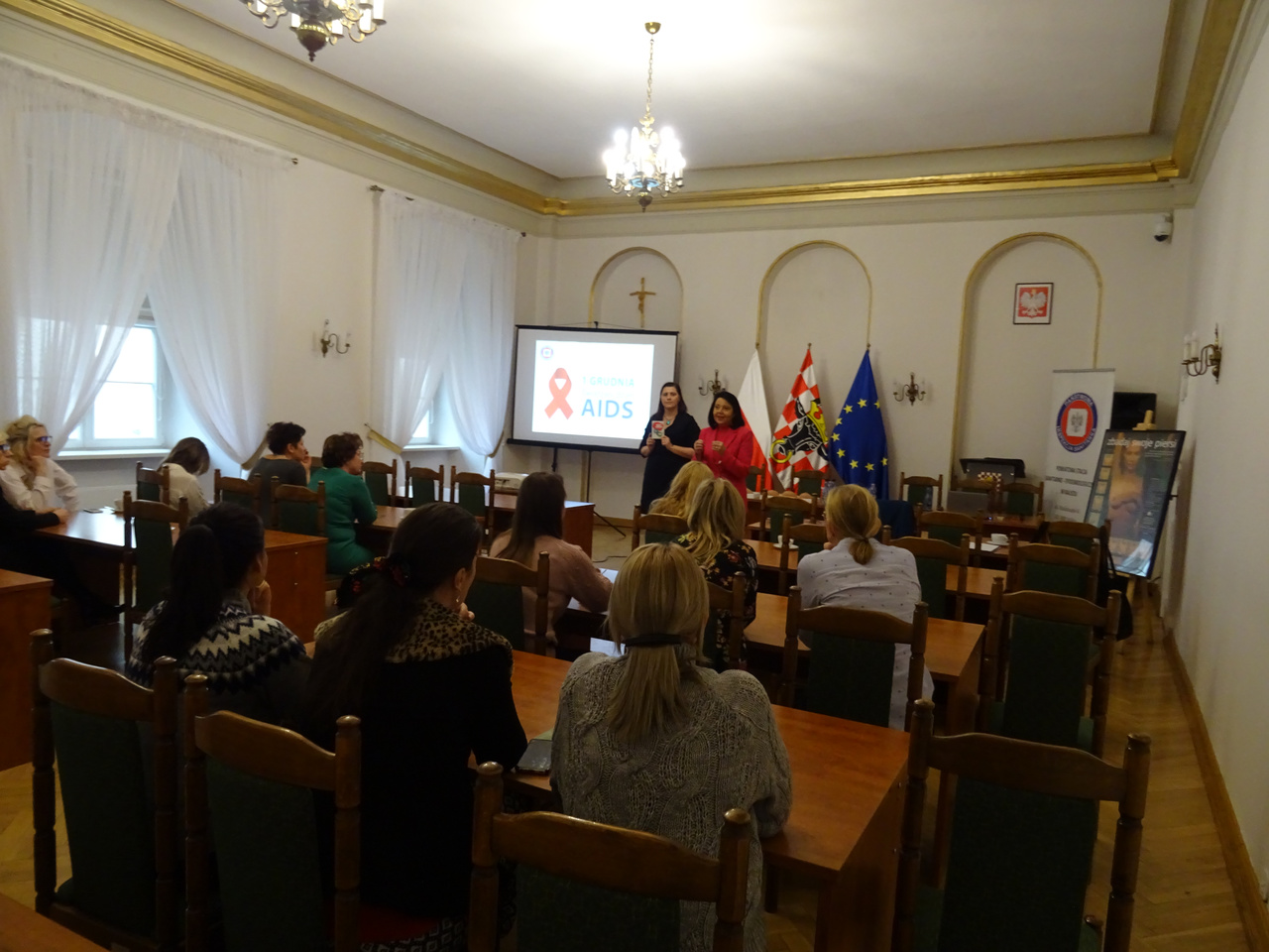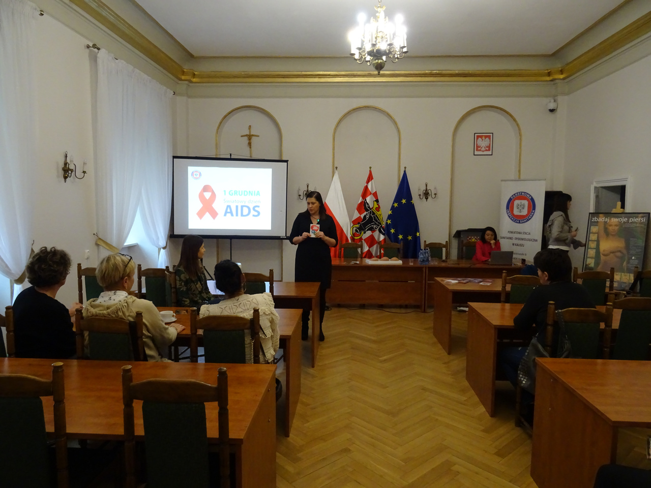 w ramach Światowego Dnia AIDS w budynku starostwa zostały przeprowadzone 3 prelekcje dla członkiń Kół Gospodyń Wiejskich z terenu powiatu kaliskiego oraz pracownic Starostwa Powiatowego.