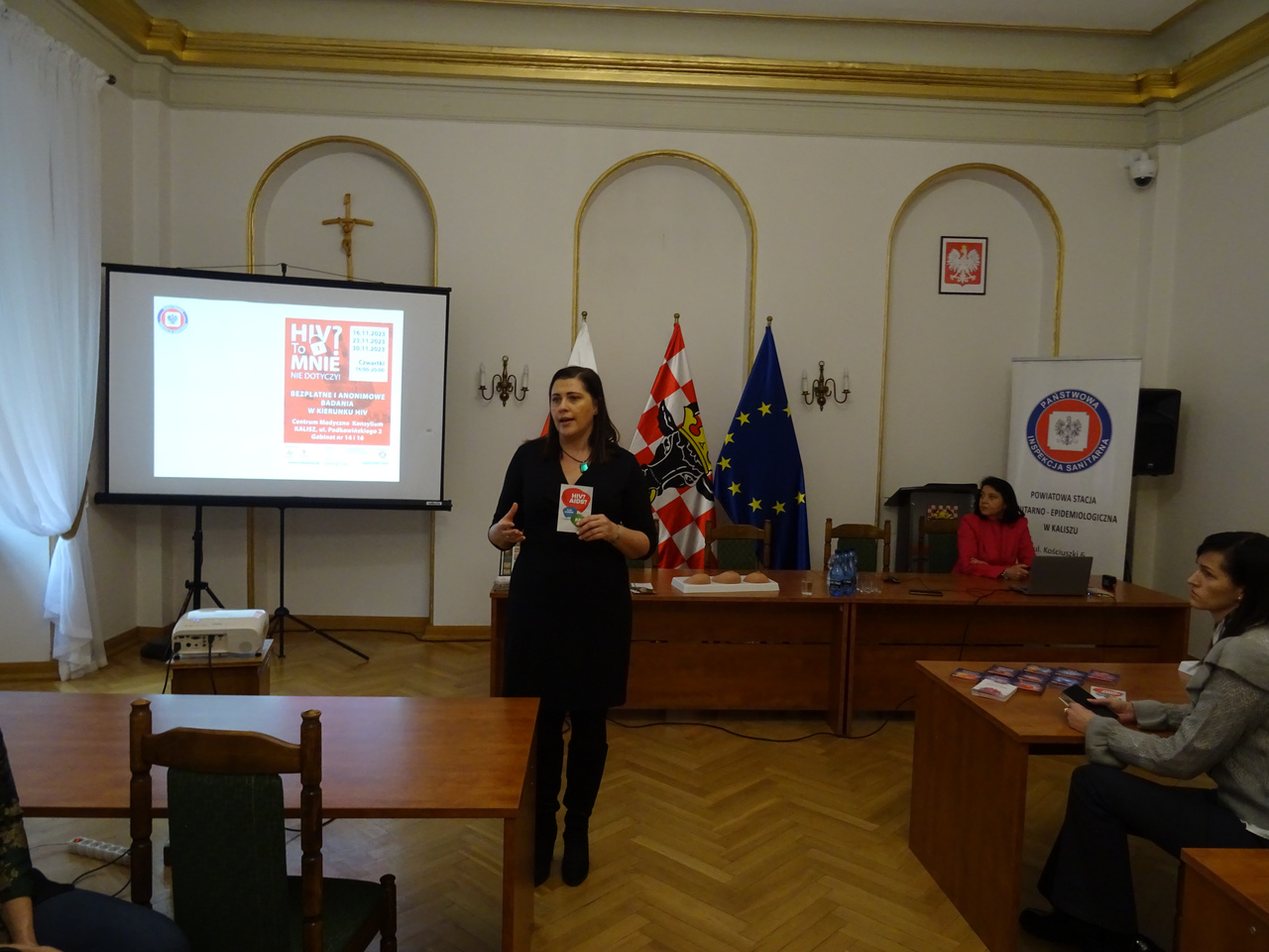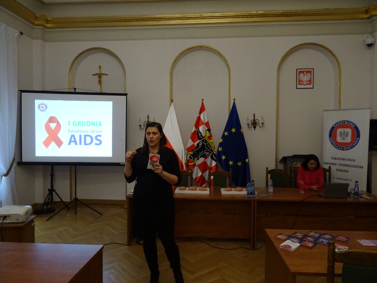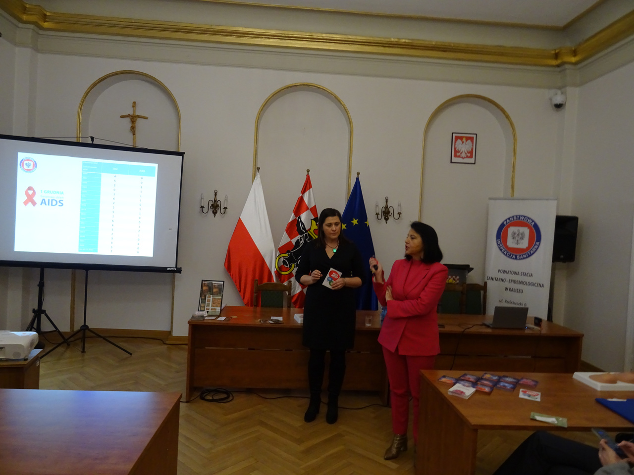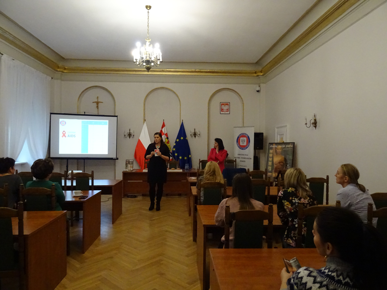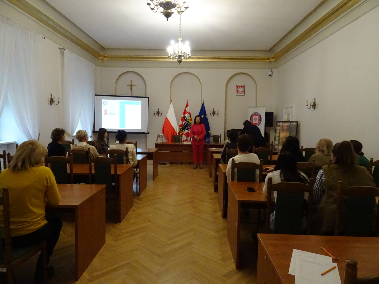 w ramach Światowego Dnia AIDS w budynku starostwa zostały przeprowadzone 3 prelekcje dla członkiń Kół Gospodyń Wiejskich z terenu powiatu kaliskiego oraz pracownic Starostwa Powiatowego.