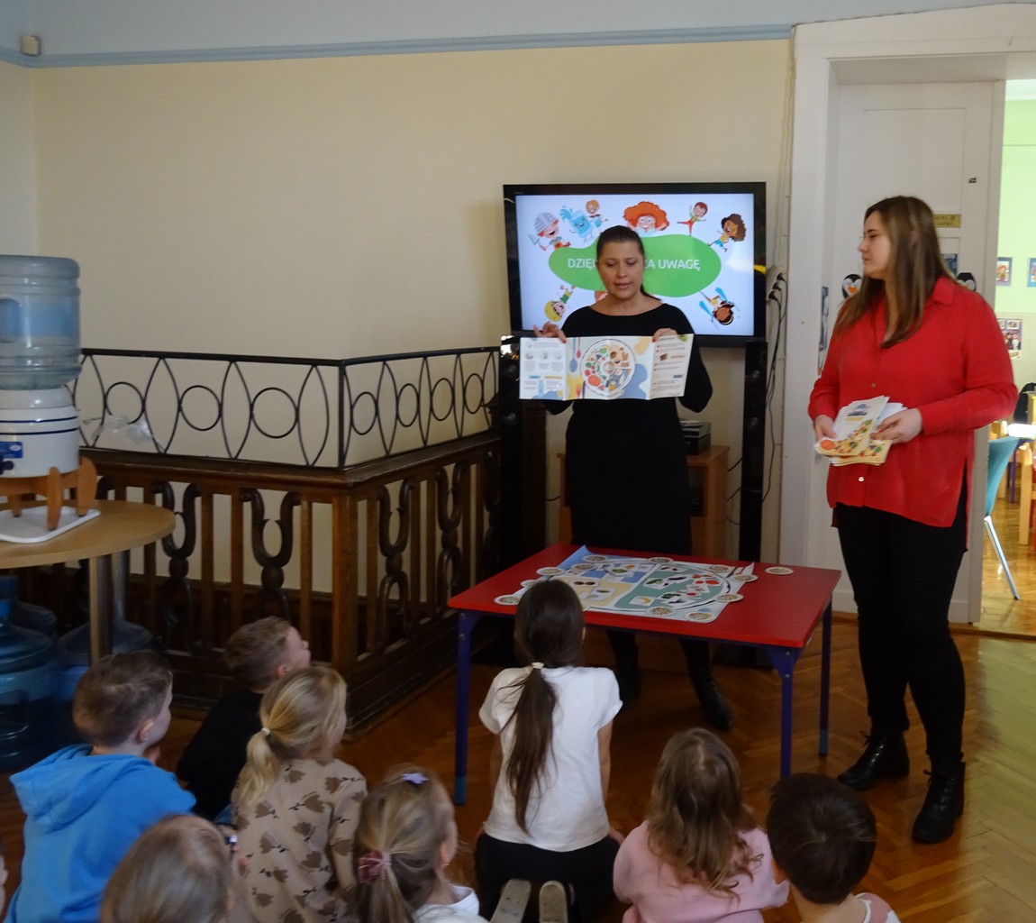 Kolejne zajęcia edukacyjne zostały przeprowadzone w dniu 5 lutego 2025 roku, przez pracowników Sekcji Oświaty Zdrowotnej i Promocji Zdrowia z Powiatowej Stacji Sanitarno-Epidemiologicznej w Kaliszu – Agnieszkę Stępniak i Joannę Jaroma -Woźniak wśród dzieci Niepublicznego Przedszkola „Niezapominajka” w Kaliszu, w ramach wojewódzkiego projektu edukacyjnego „Talerz zdrowego żywienia”.