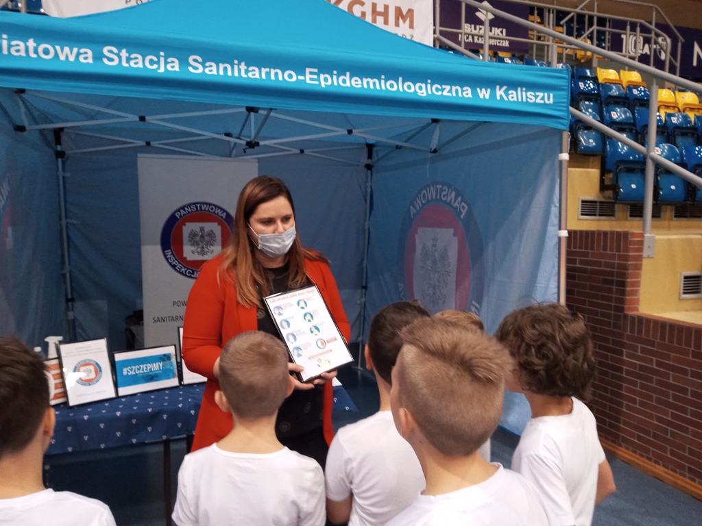 W dniu 19 października 2021r pracownicy Sekcji Oświaty Zdrowotnej i Promocji Zdrowia Powiatowej Stacji Sanitarno – Epidemiologicznej w Kaliszu – Elżbieta Wojtyła – kierownik sekcji oraz Agnieszka Stępniak i Joanna Jaroma – Woźniak uczestniczyli w drugim spotkaniu, które odbyło się w ramach cyklu imprez sportowo – edukacyjnych pt.: „Siatkówka z klasą” organizowanych przez Miejski Klub Sportowy Kalisz Sp. z o.o.