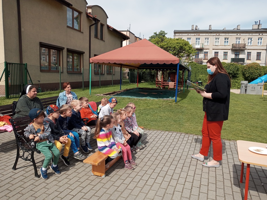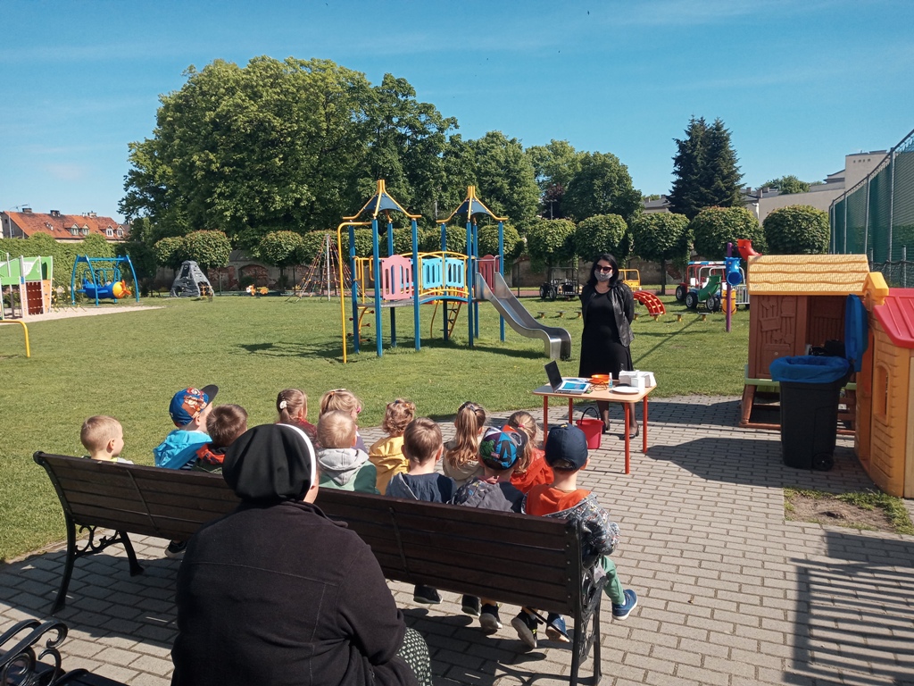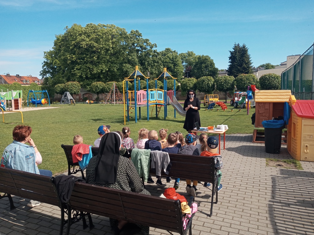 W dniu 24 maja 2021r. miały miejsce trzy spotkanie profilaktyczne w ogrodzie Publicznego Przedszkola Sióstr Nazaretanek w Kaliszu. Kierownik Sekcji Oświaty Zdrowotnej i Promocji Zdrowia, Elżbieta Wojtyła przeprowadziła pogadanki odnośnie grypy.