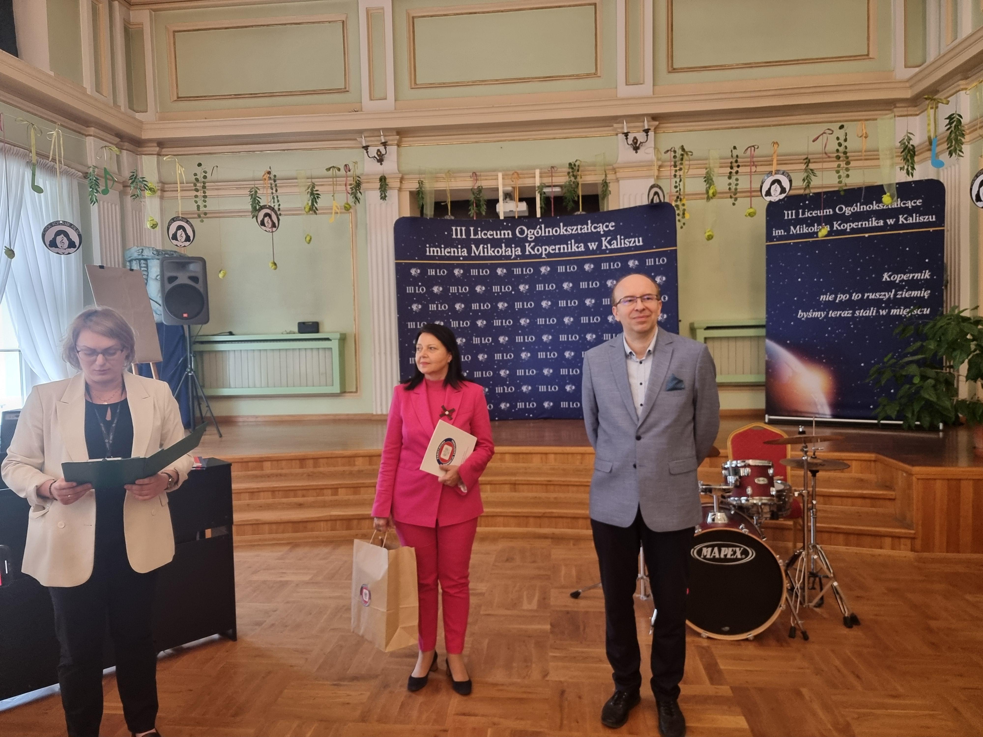 Nagrodę ufundowaną przez PSSE w Kaliszu wręczyli: Kierownik Sekcji OZ i PZ Elżbieta Wojtyła wicedyrektor placówki Grzegorz Wieczorek oraz Sylwia Jaroszewicz.