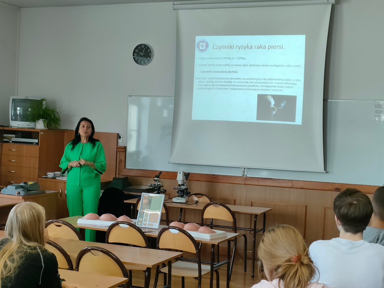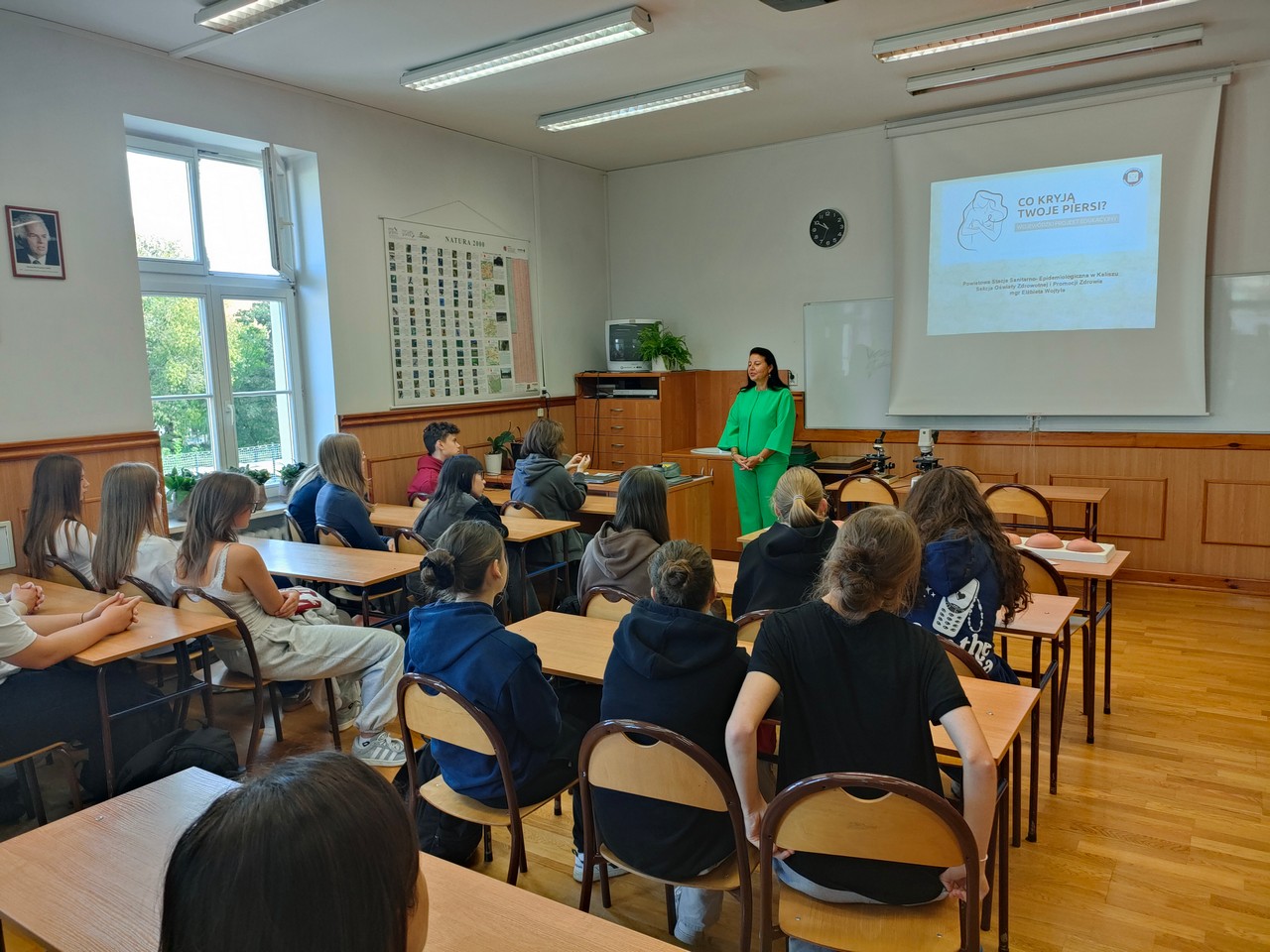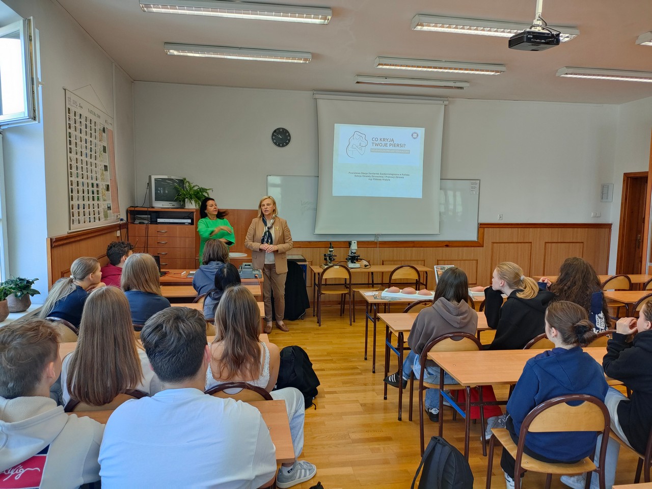 23 września br. zostały przeprowadzone szkolenia wśród uczniów I Liceum Ogólnokształcącego w Kaliszu w ramach wojewódzkiego projektu edukacyjnego „Co kryją Twoje piersi?”.