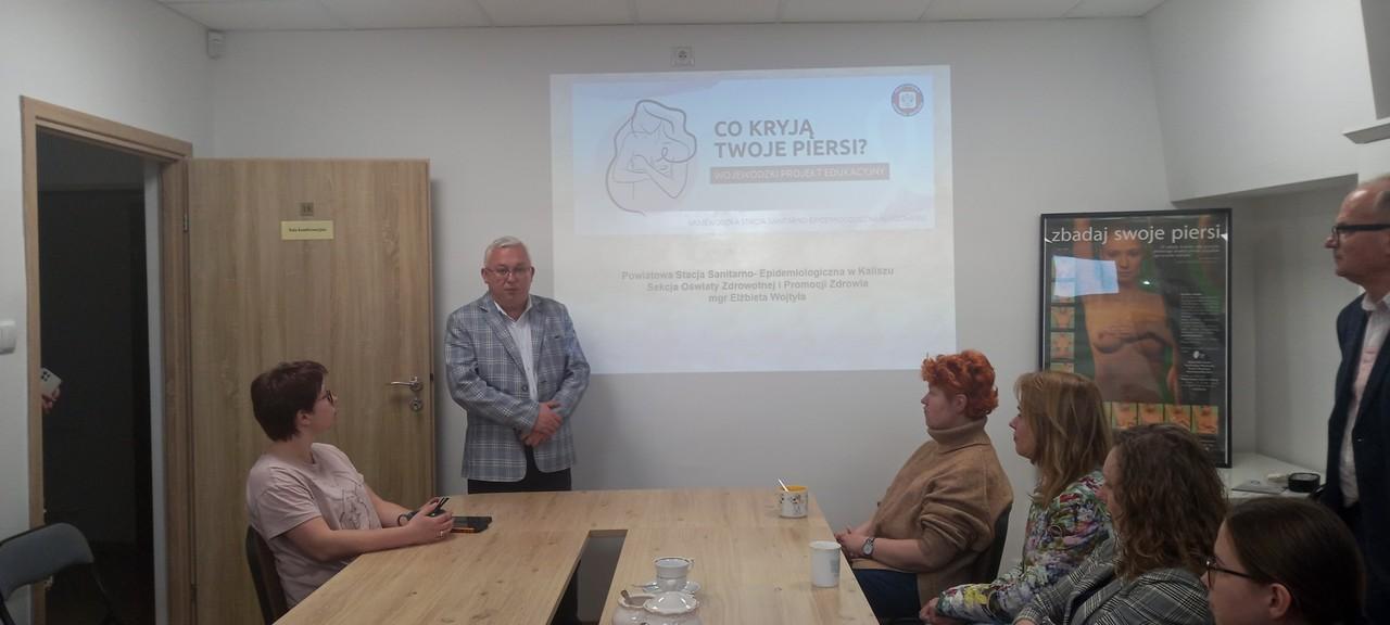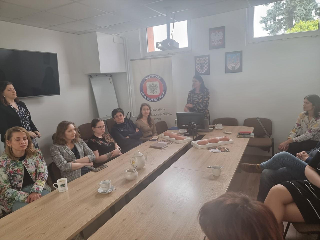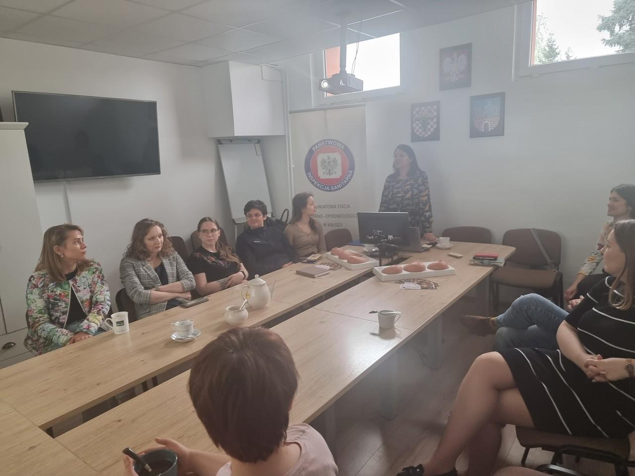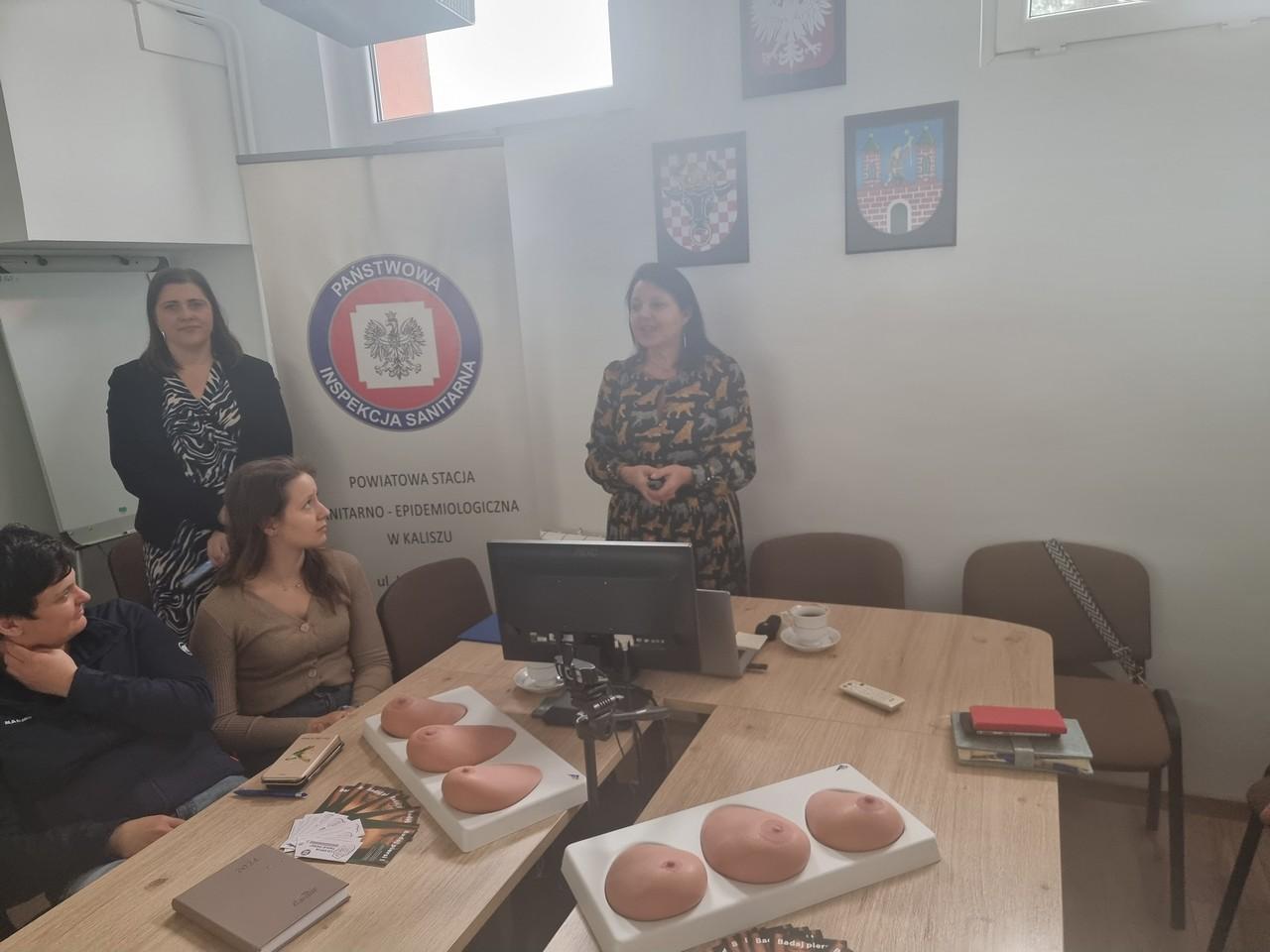 W dniu 10 marca 2024 roku w Powiatowym Inspektoracie Weterynarii w Kaliszu pracownicy Sekcji Oświaty Zdrowotnej i Promocji Zdrowia Powiatowej Stacji Sanitarno- Epidemiologicznej w Kaliszu, przeprowadzili szkolenie w ramach wojewódzkiego projektu edukacyjnego „Co kryją Twoje piersi?”.