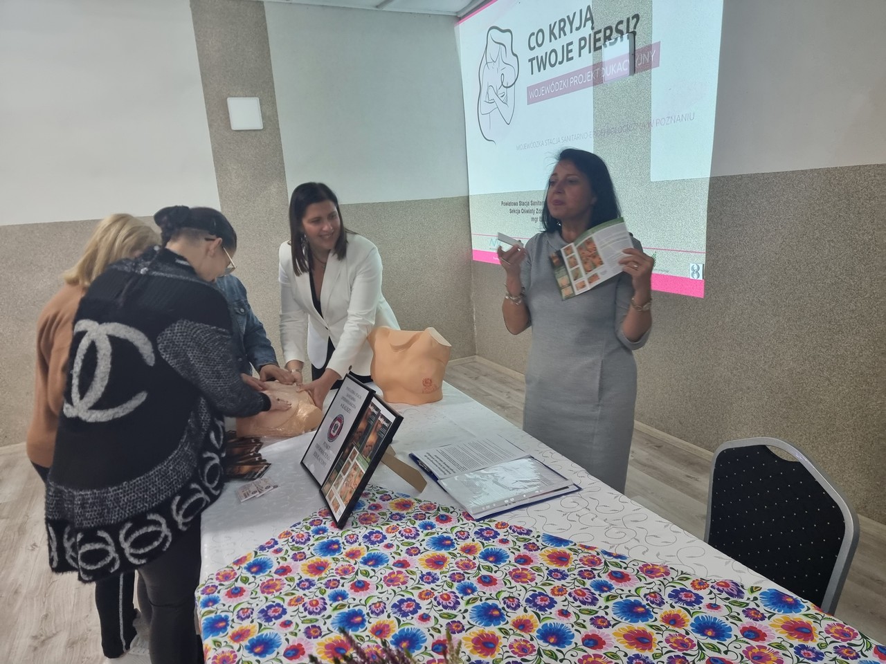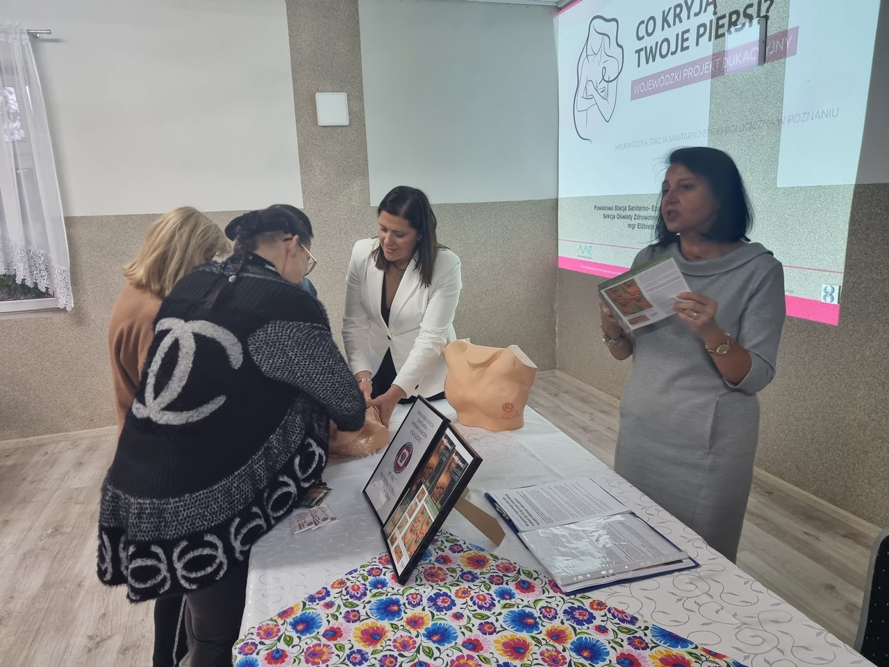 Przeprowadzono naukę samobadania piersi z wykorzystaniem fantomu wypożyczonego od Uniwersytetu Kaliskiego.