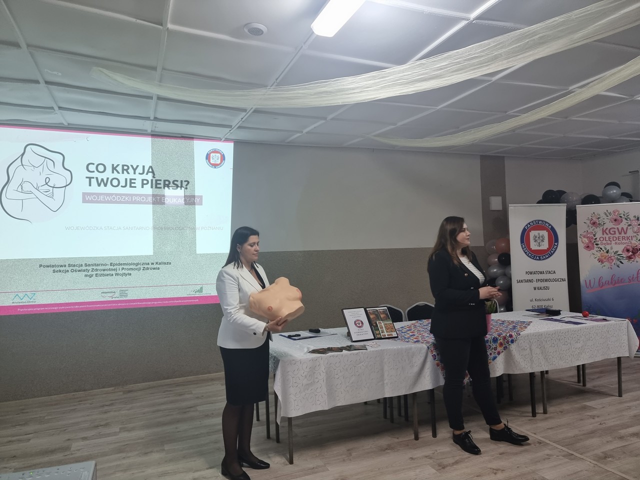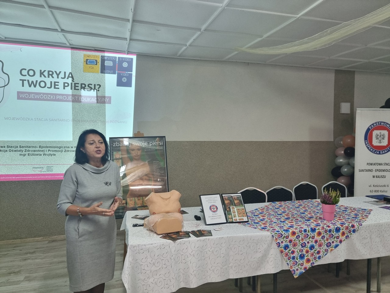 W dniu 24 października 2023 r. pracownicy Sekcji Oświaty Zdrowotnej i Promocji Zdrowia Powiatowej Stacji Sanitarno- Epidemiologicznej w Kaliszu podjęli działanie w ramach wojewódzkiego projektu edukacyjnego dotyczącego profilaktyki raka piersi „Co kryją Twoje piersi?”.