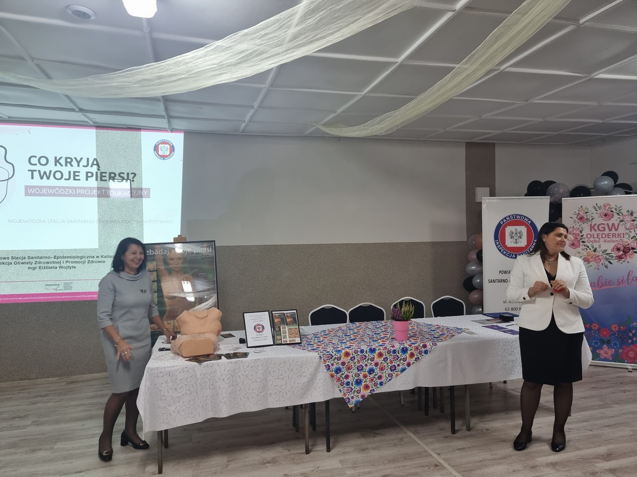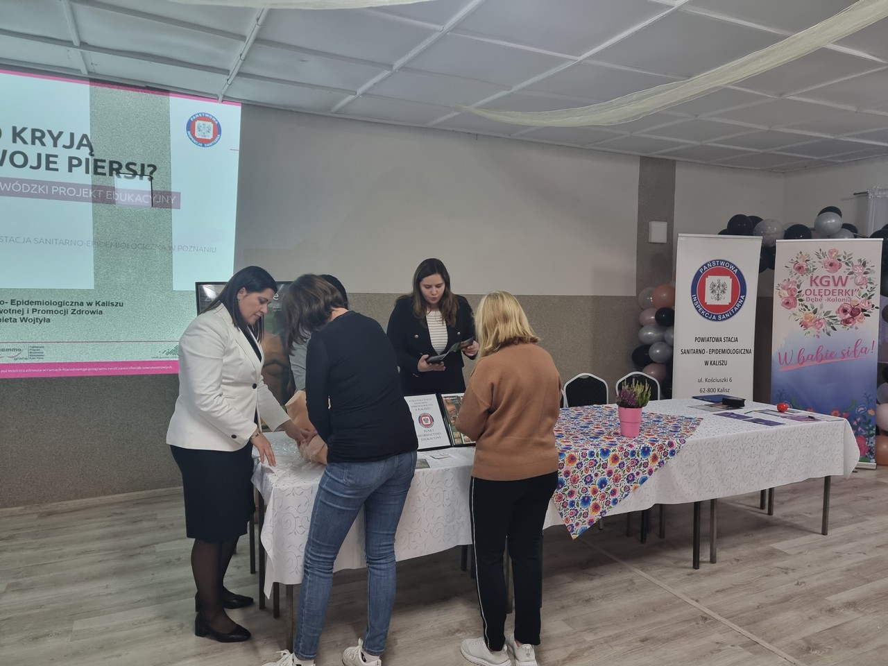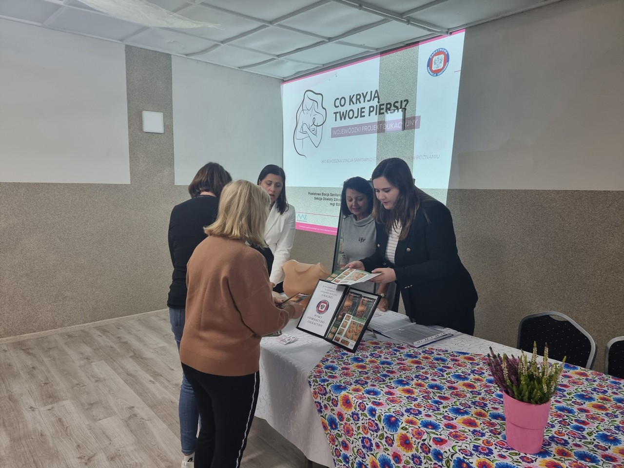 Każdy uczestnik spotkania na zakończenie otrzymał materiały edukacyjne, opracowane przez pracowników Wojewódzkiej Stacji Sanitarno- Epidemiologicznej w Poznaniu: ulotka „Badaj piersi!” oraz kalendarz badania.
