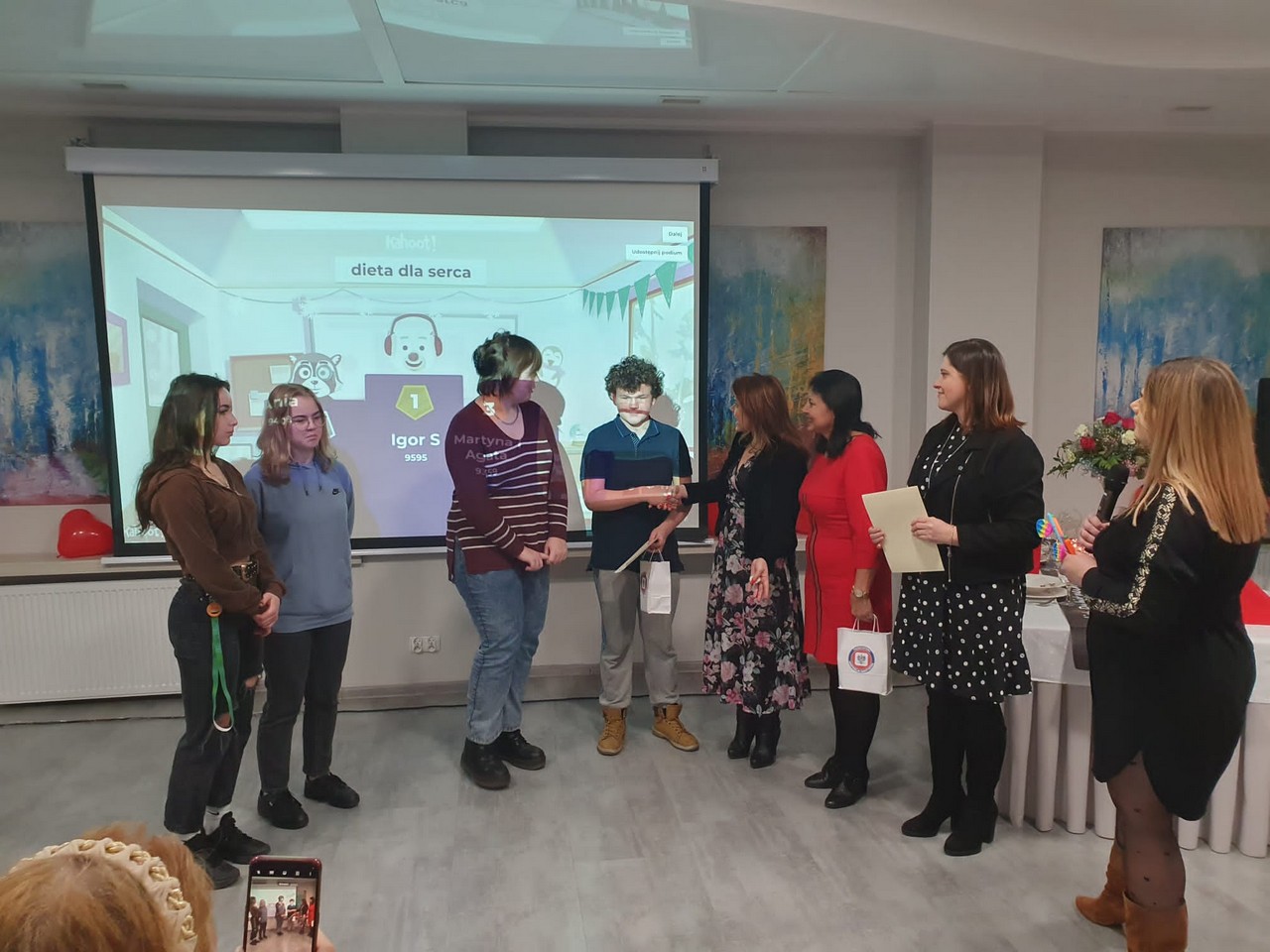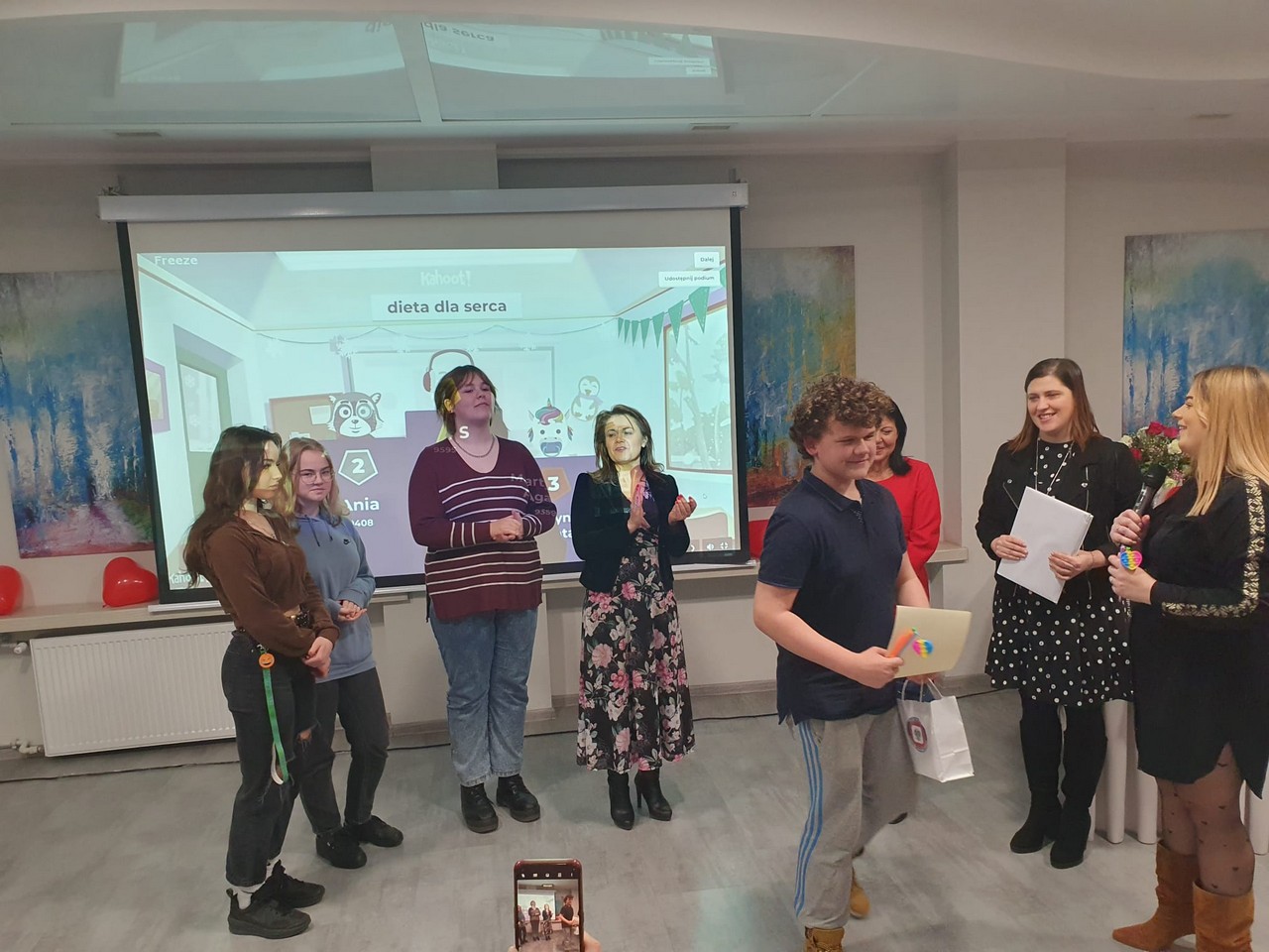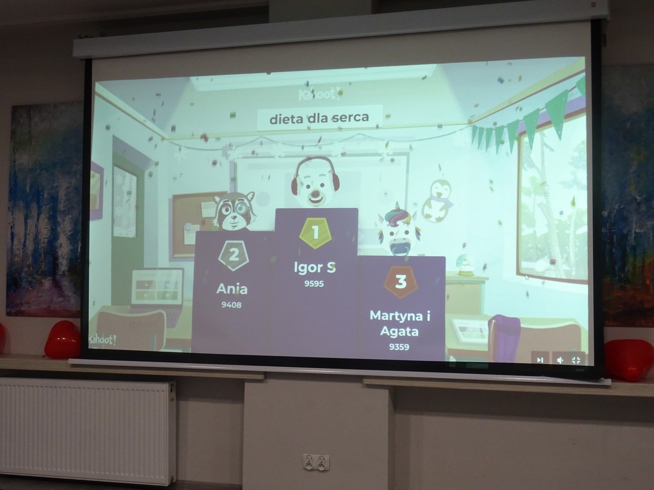 Następnie przeprowadzono konkurs wiedzy przy użyciu aplikacji kahoot.it. oraz przeprowadzono głosowanie na walentynkowy deser.