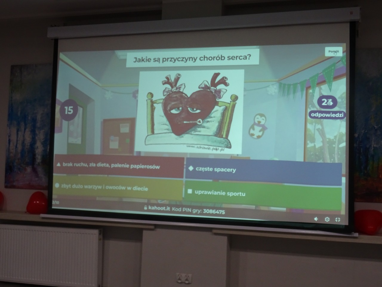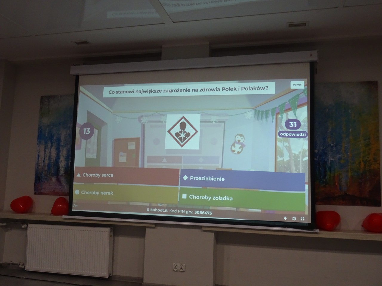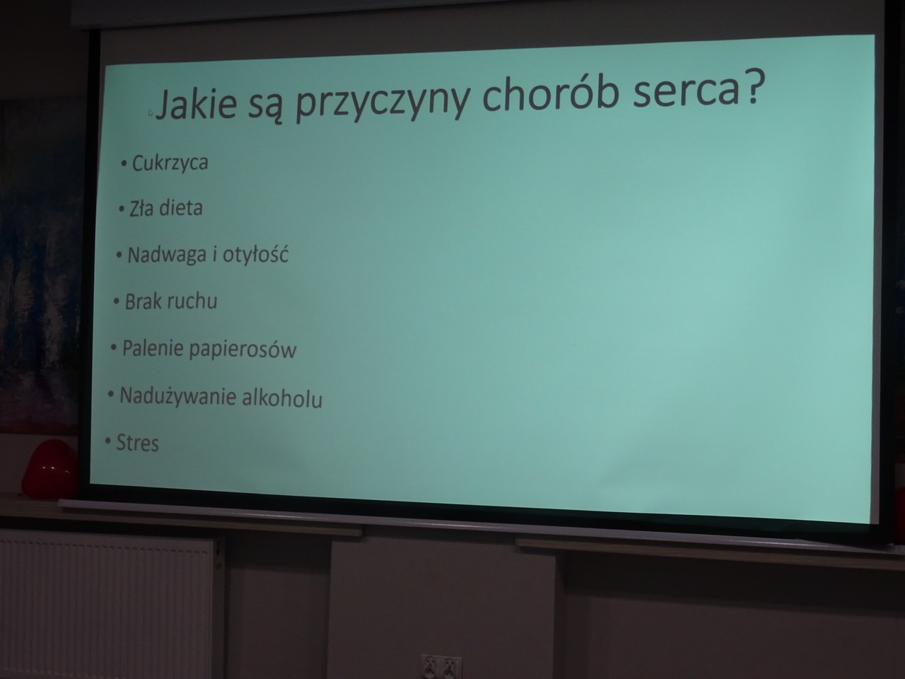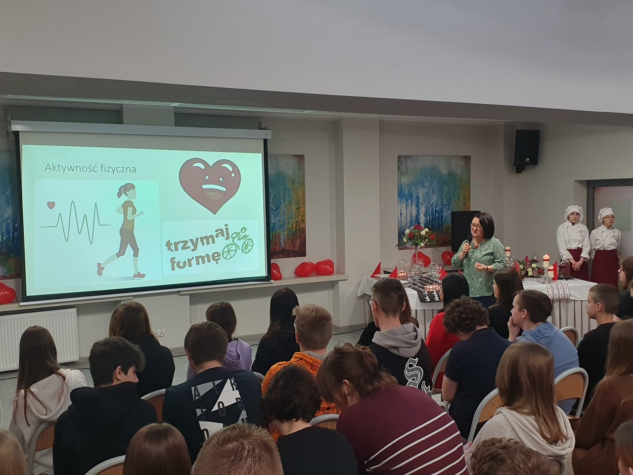 Imprezę rozpoczęto od prezentacji przygotowanej przez pracownika szkoły na temat „Choroby serca i układu krążenia to największe zagrożenie dla zdrowia Polek i Polaków” oraz pogadanki dot. profilaktyki HIV/AIDS przeprowadzonej przez kierownika Sekcji Oświaty Zdrowotnej i Promocji Zdrowia - Elżbietę Wojtyłę.