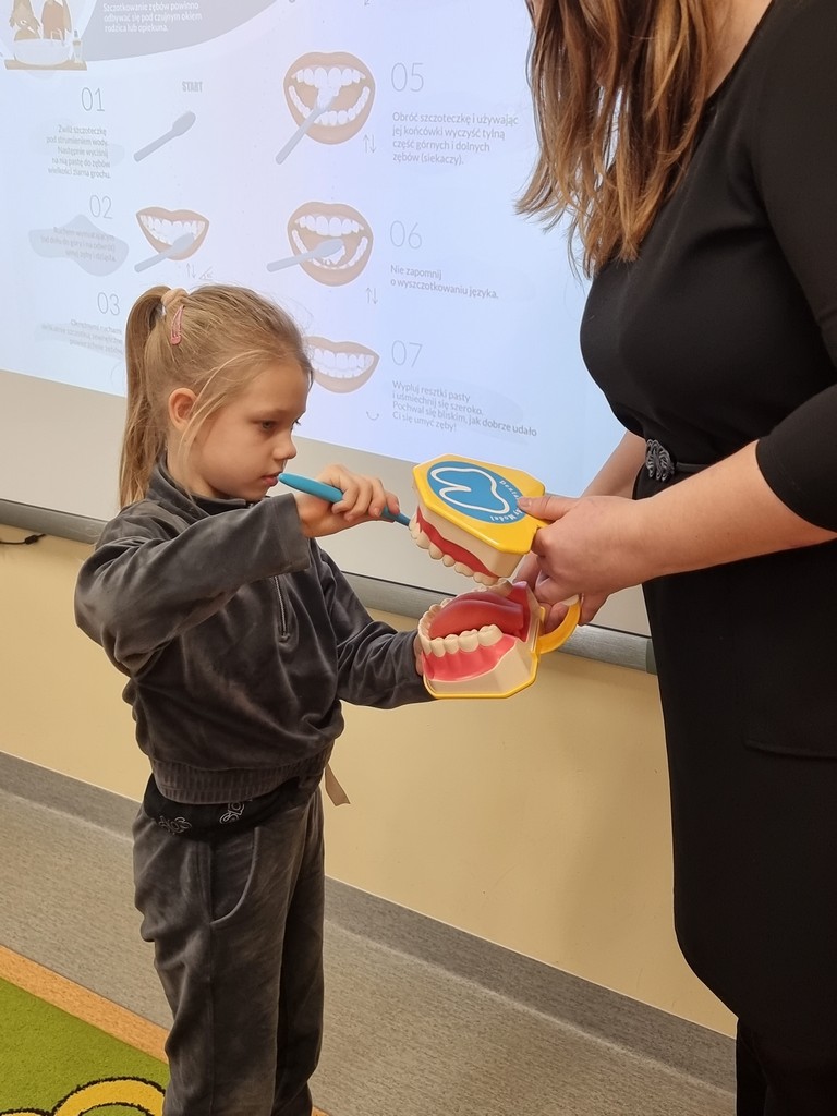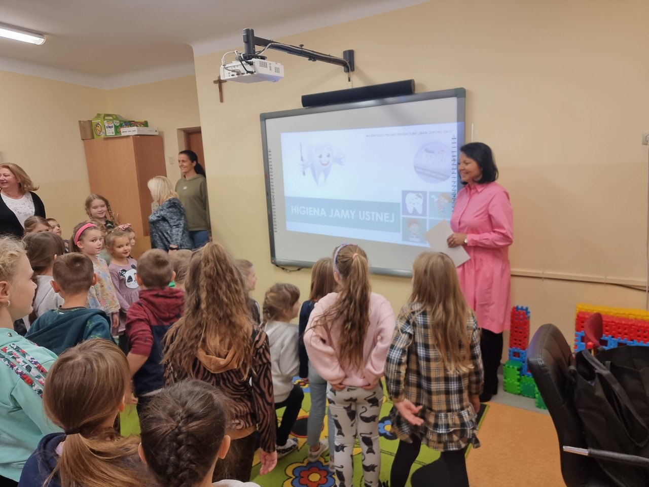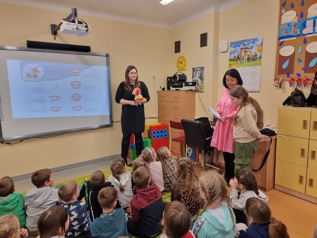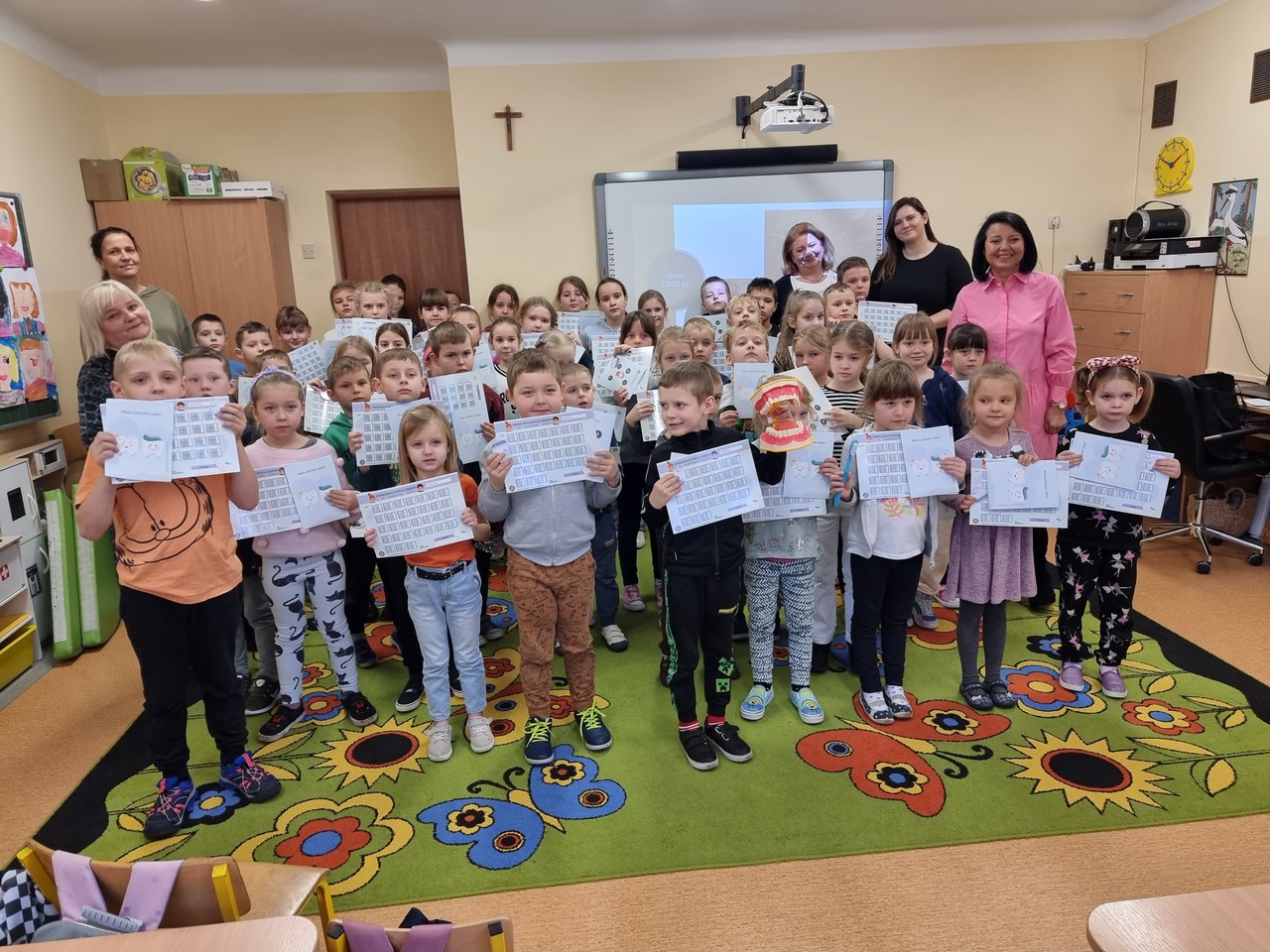 W ramach projektu edukacyjnego Wojewódzkiej Stacji Sanitarno- Epidemiologicznej w Poznaniu „Mam zdrowe zęby!”, przeprowadzono pogadankę z wykorzystaniem prezentacji multimedialnej oraz instruktaż prawidłowego mycia zębów przy pomocy modelu szczęki. Omówiono zasady dbania o higienę jamy ustnej, oraz co trzeba robić by zęby były zdrowe i mocne.