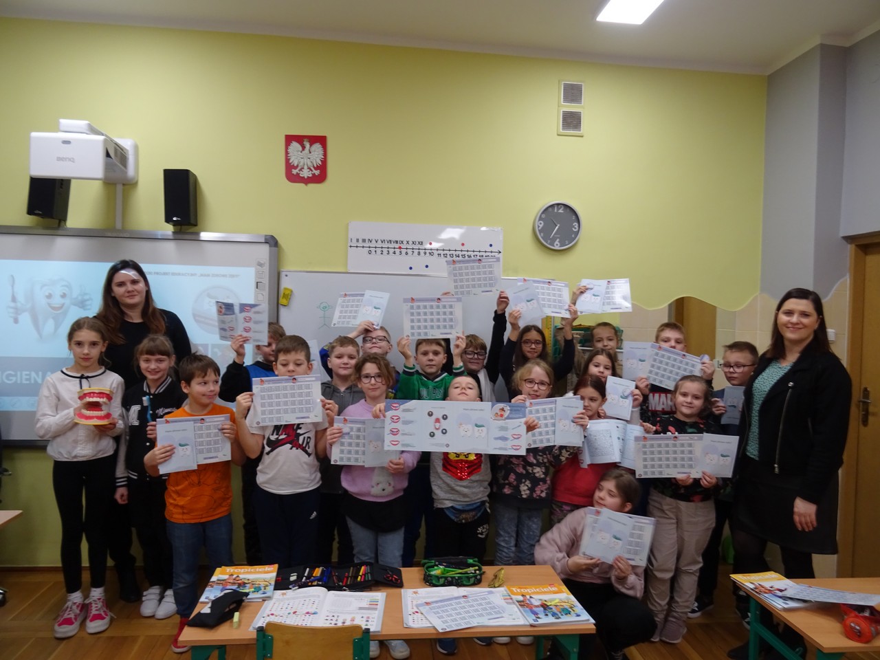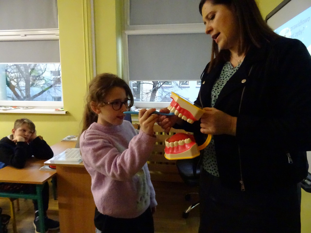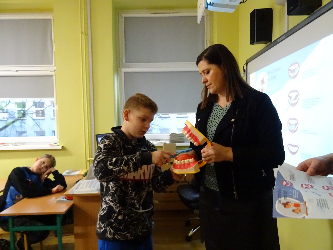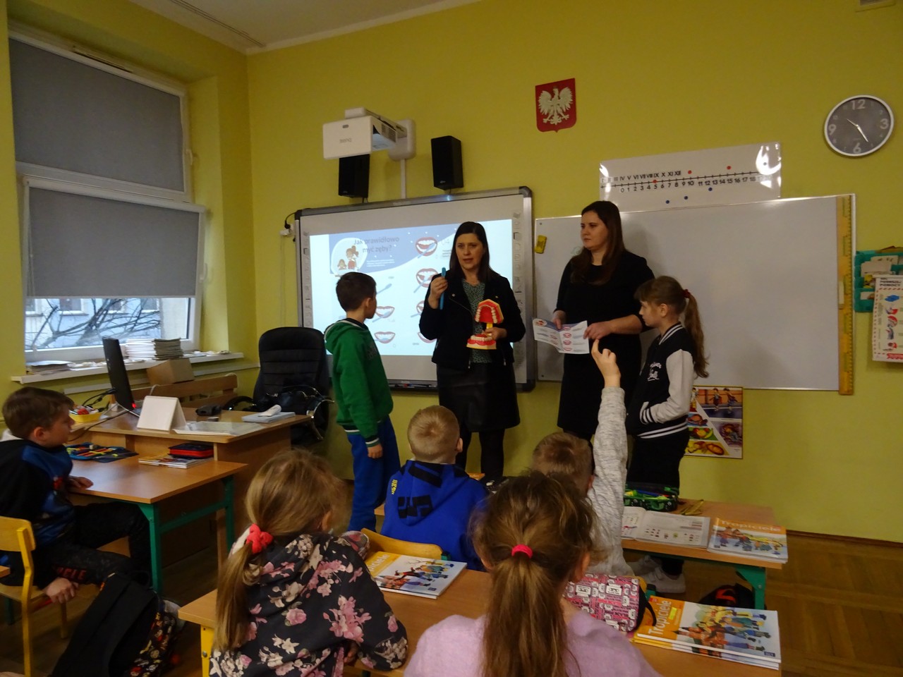 Zajęcia dotyczące higieny jamy ustnej dla uczniów Szkoły Podstawowej nr 16 w Kaliszu