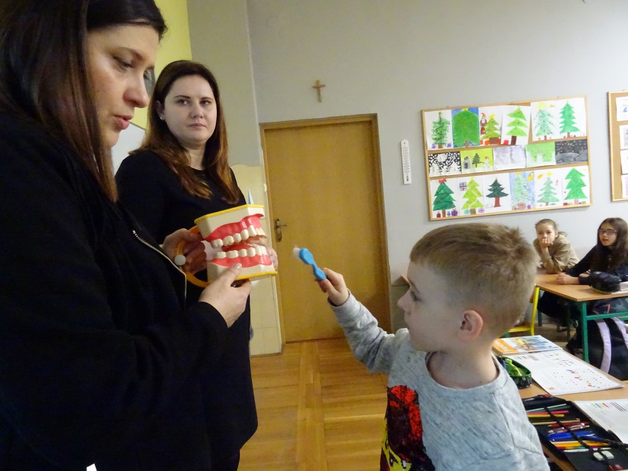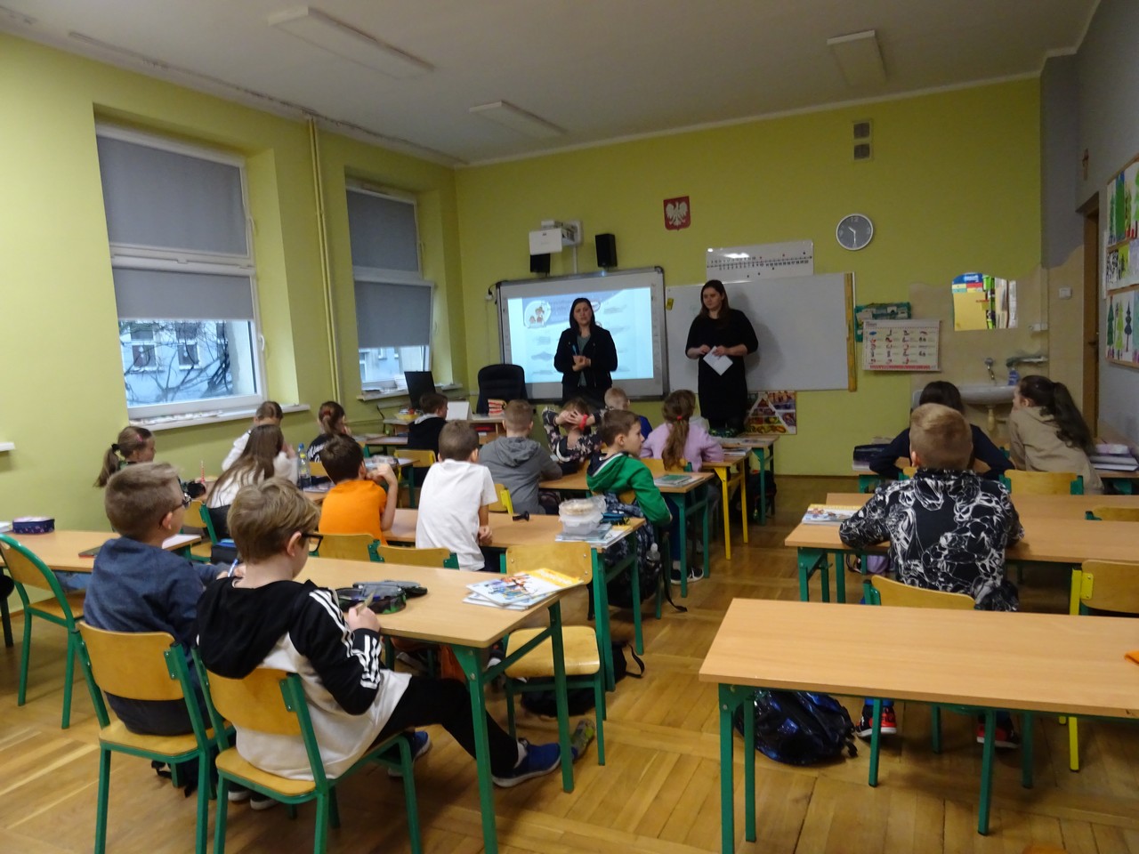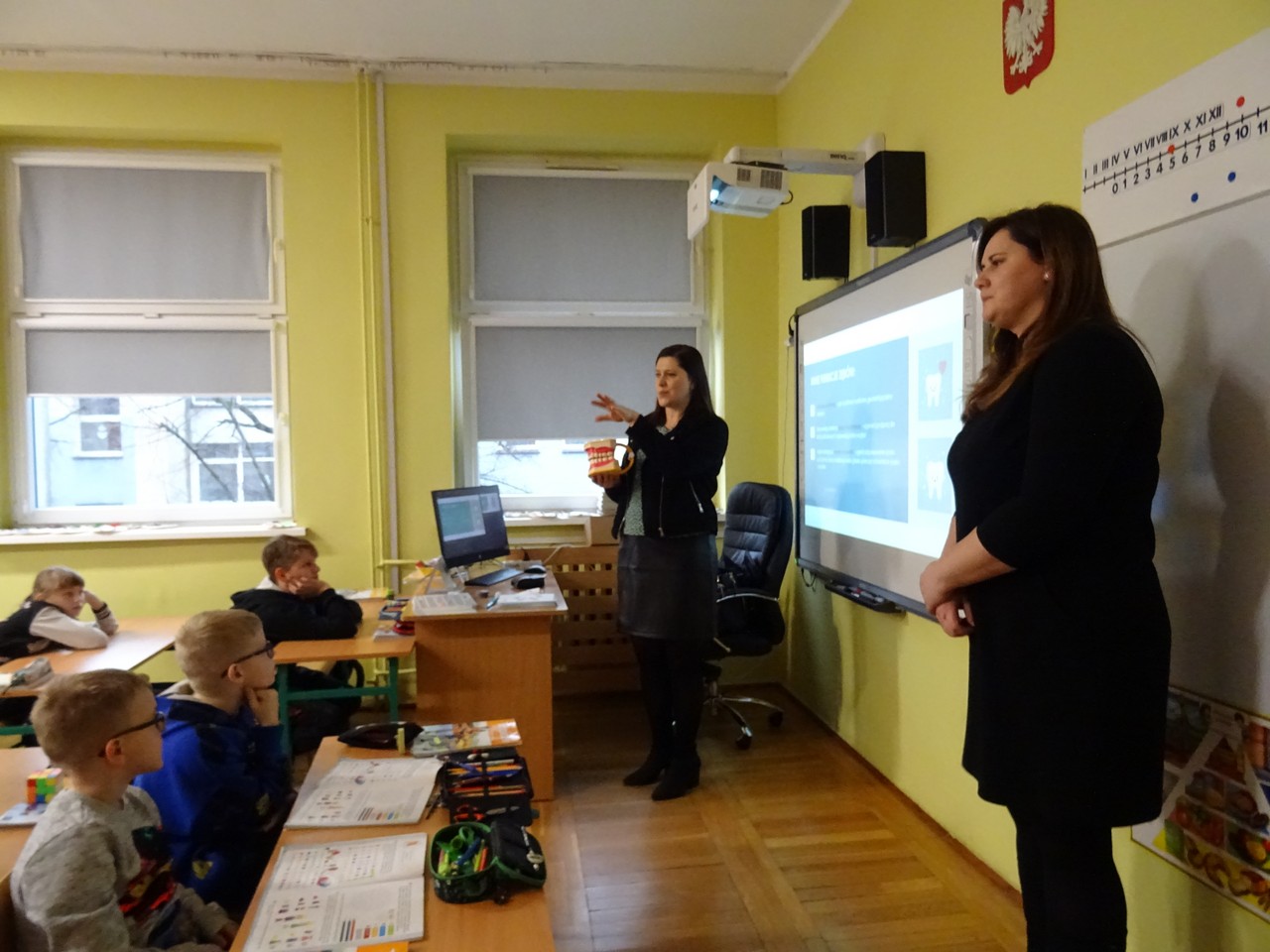 4 stycznia 2024 r. w Szkole Podstawowej nr 16 w Kaliszu, pracownicy Sekcji Oświaty Zdrowotnej i Promocji Zdrowia Powiatowej Stacji Sanitarno-Epidemiologicznej w Kaliszu Agnieszka Stępniak i Joanna Jaroma-Woźniak, w ramach wojewódzkiego projektu edukacyjnego „Mam zdrowe zęby!” przeprowadzili pogadankę z instruktażem prawidłowego mycia zębów wśród uczniów jednej klasy.