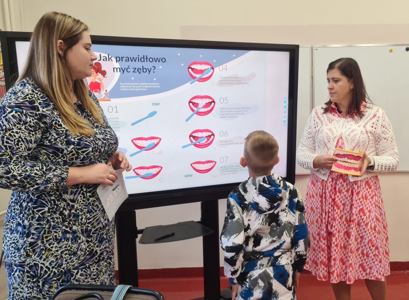 Zajęcia w ramach wojewódzkiego projektu edukacyjnego „Mam zdrowe zęby!” dla uczniów Szkoły Podstawowej im. Jana III Sobieskiego w Zbiersku