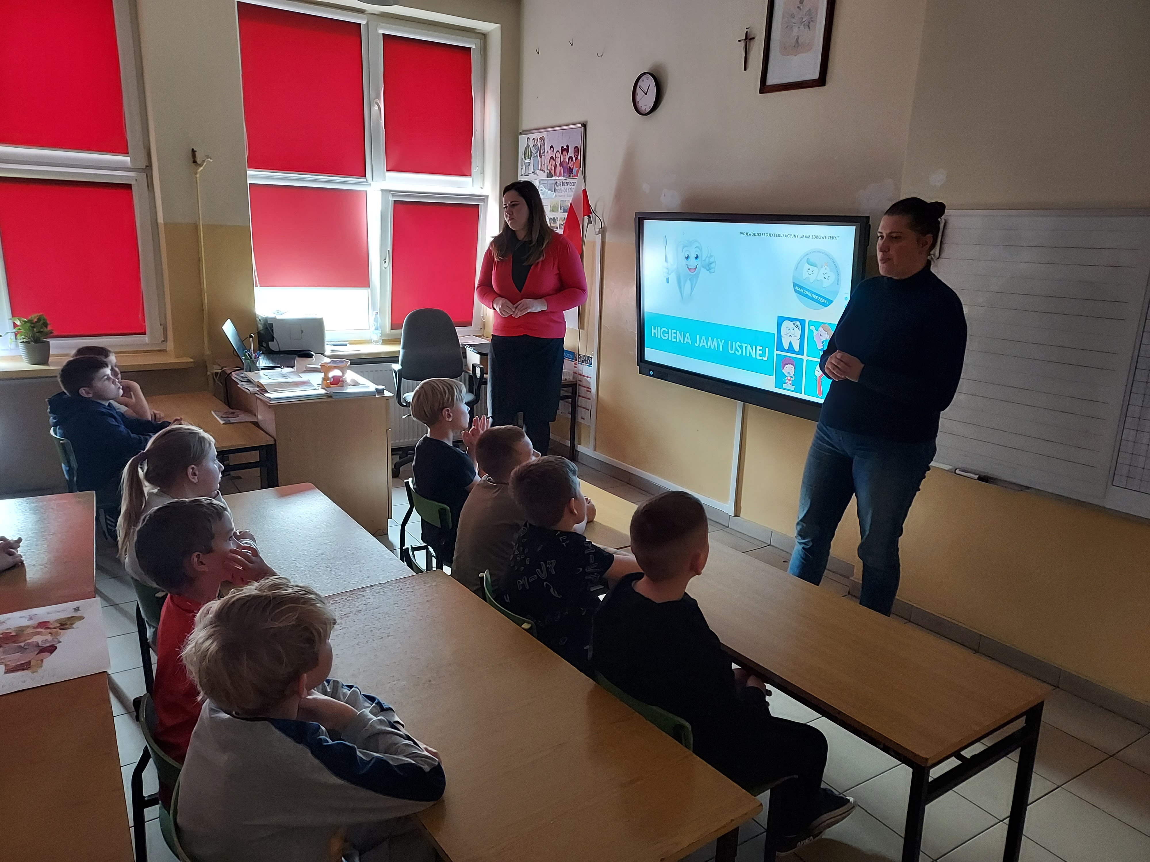 Zajęcia w ramach wojewódzkiego projektu edukacyjnego „Mam zdrowe zęby!” w Szkole Podstawowej w Dzierzbinie – Kolonii