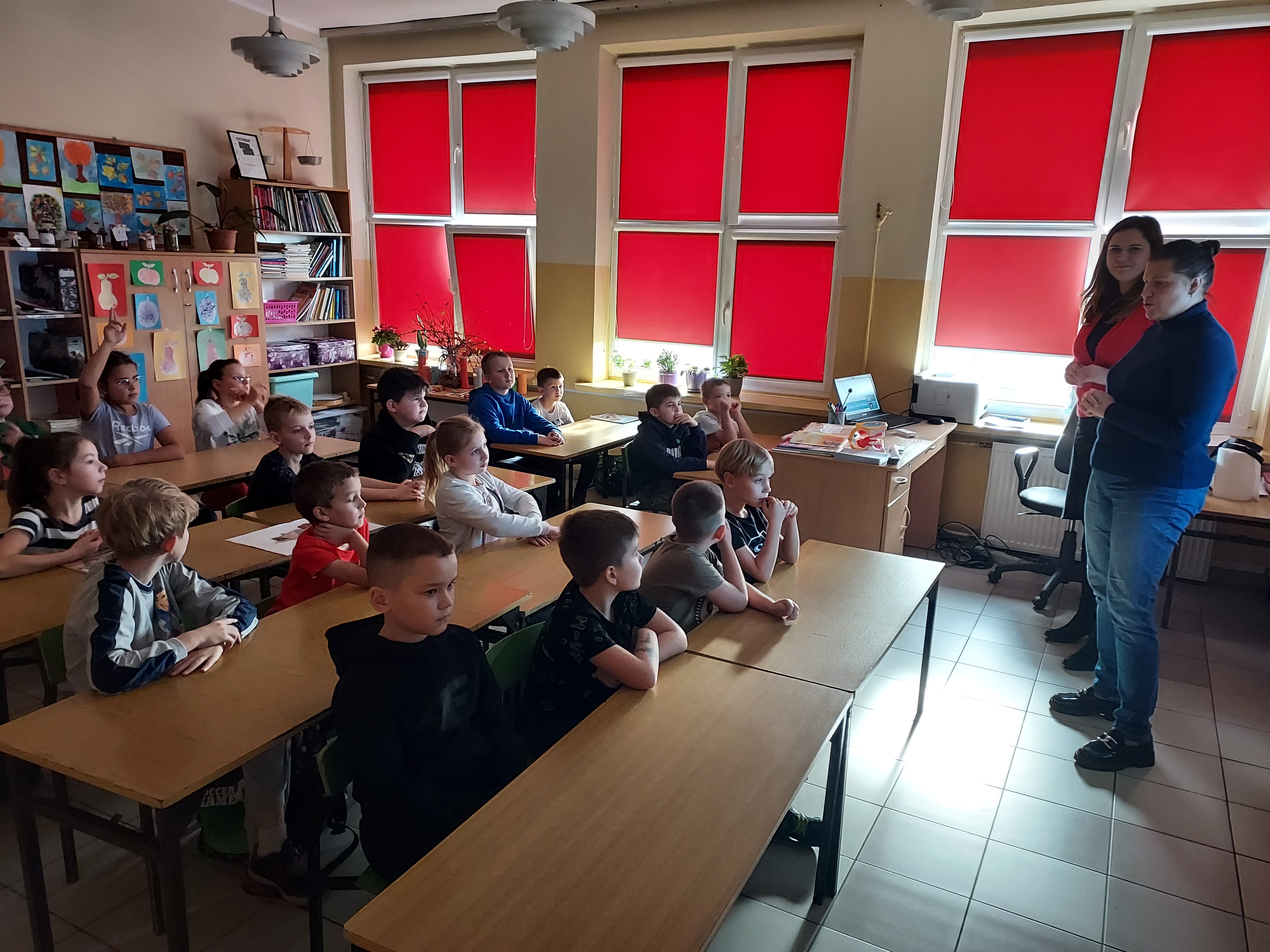W dniu 9 listopada 2023 r. w Szkole Podstawowej im. Szarych Szeregów w Dzierzbinie – Kolonii pracownicy Sekcji Oświaty Zdrowotnej i Promocji Zdrowia Powiatowej Stacji Sanitarno- Epidemiologicznej w Kaliszu, podjęli działania w ramach wojewódzkiego projektu edukacyjnego „Mam zdrowe zęby!”.