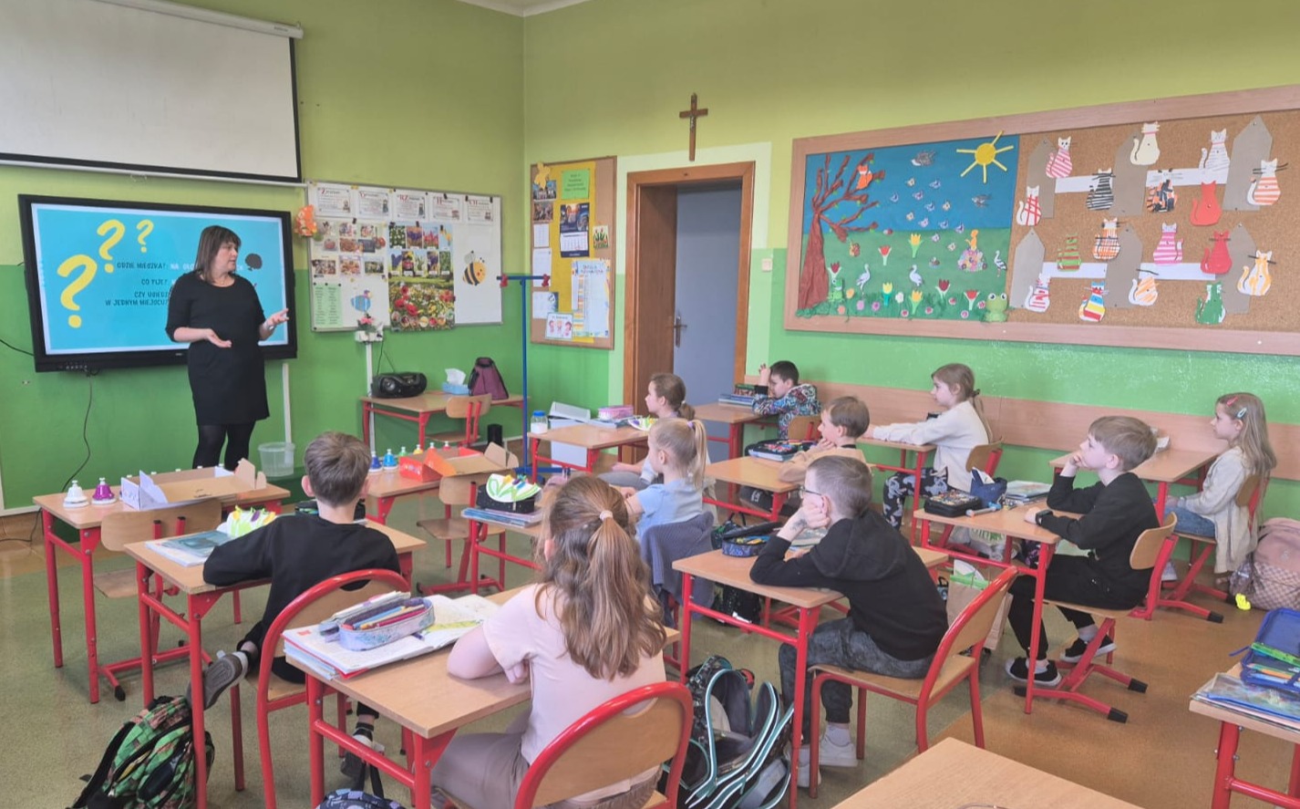 W dniu 27 marca 2026 roku, pracownik Sekcji Oświaty Zdrowotnej i Promocji Zdrowia Powiatowej Stacji Sanitarno-Epidemiologicznej w Kaliszu – Agnieszka Stępniak przeprowadziła zajęcia w ramach projektu edukacyjnego „Gdy coś Ci chodzi po głowie” wśród uczniów klasy II Szkoły Podstawowej w Stawie.