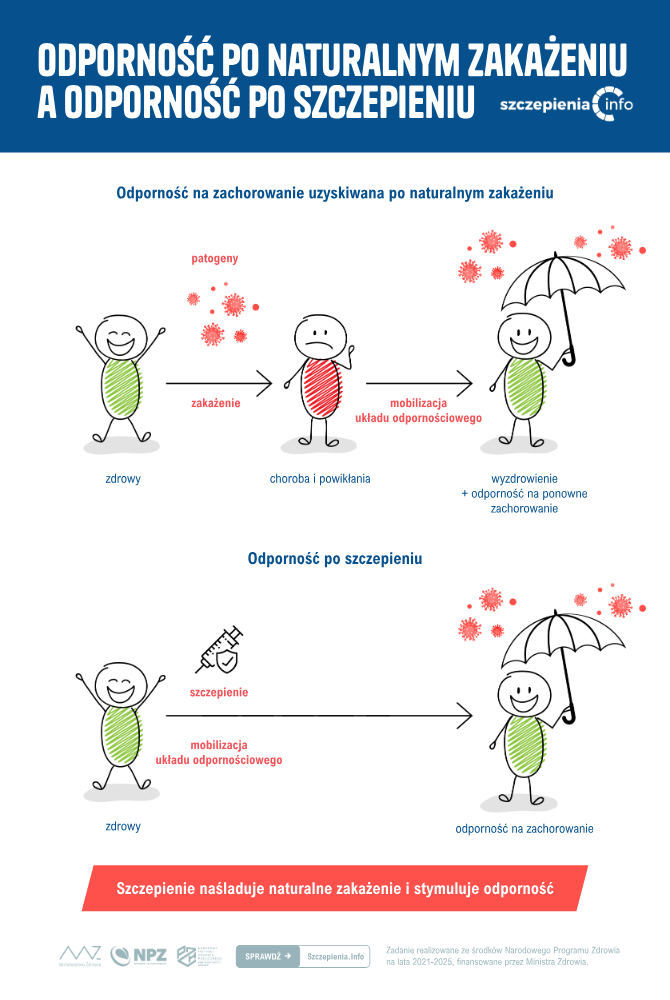 i szczepienie mogą zapewnić odporność na pewien czas, jednak szczepienia pomagają kontrolować przebieg zachorowań i chronić osoby najbardziej narażone. Z punktu widzenia zdrowia publicznego szczepienia są skuteczniejszym i bezpieczniejszym rozwiązaniem, pozwalającym uniknąć groźnych konsekwencji chorób zakaźnych.