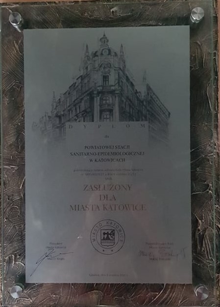 „Zasłużony dla Miasta Katowice” – tytuł przyznany dla PSSE w Katowicach.