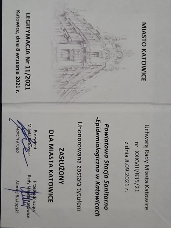Z ogromną przyjemnością informujemy, że tytuł „Zasłużony dla Miasta Katowice” po raz pierwszy został przyznany Powiatowej Stacji Sanitarno-Epidemiologicznej w Katowicach za zaangażowanie i trud włożony w walkę z epidemią.