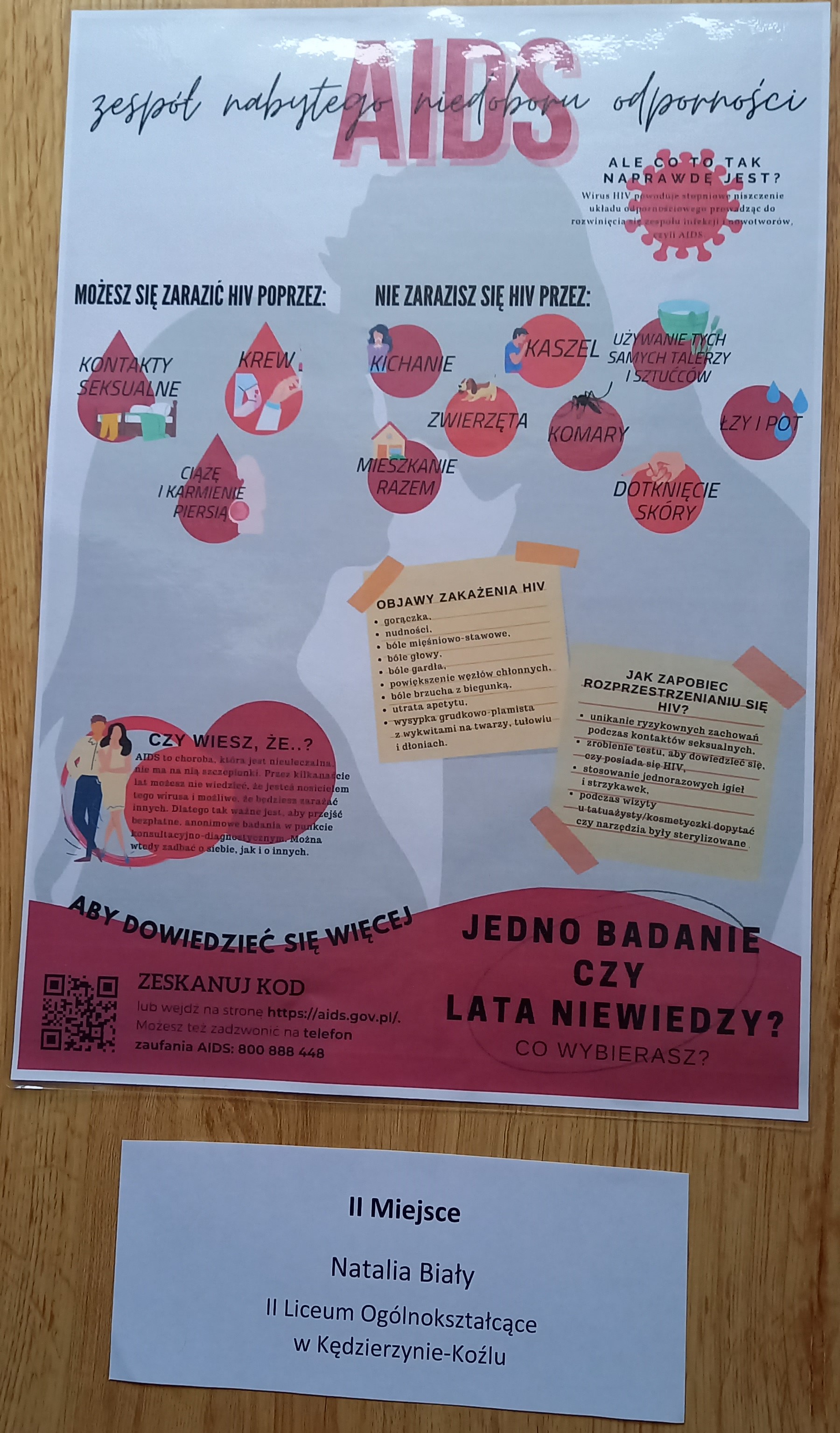 Rozstrzygnięty został „Powiatowy konkurs na plakat związany tematycznie z HIV/AIDS”. Organizatorem konkursu była Powiatowa Stacja Sanitarno-Epidemiologiczna w Kędzierzynie-Koźlu oraz Starostwo Powiatowe w Kędzierzynie-Koźlu. Nawiązano również współpracę z Krajowym Centrum ds. AIDS. Konkurs adresowany był do uczniów klas I-V szkół ponadpodstawowych z powiatu kędzierzyńsko-kozielskiego. Jego celem było m.in. zwiększenie poziomu wiedzy nt. HIV/AIDS, propagowanie bezpiecznych zachowań w aspekcie HIV/AIDS, kształtowanie postawy tolerancji i akceptacji wobec osób żyjących z HIV i chorych na AIDS.