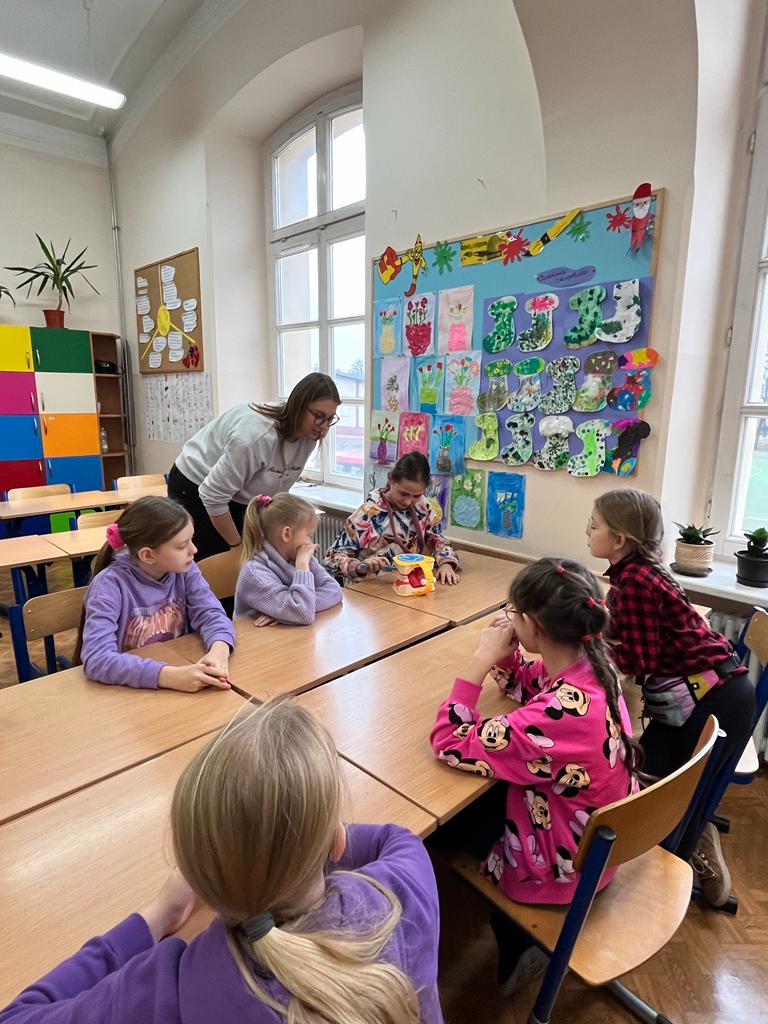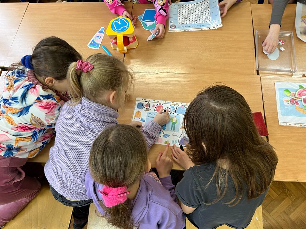 Podczas zajęć przedstawiono najważniejsze informacje dotyczące akcji „Bezpieczne ferie”. Na zajęciach warsztatowych dzieci mogły samodzielnie pod okiem prowadzącego umyć zęby na modelu oraz przedstawiono prawidłową metodę mycia rąk. Prowadzono różnego rodzaju gry i zabawy edukacyjne. Na zakończenie, każdy uczeń otrzymał zadanie z narysowaniem swoich wymarzonych bezpiecznych ferii „Bezpieczne ferie”.