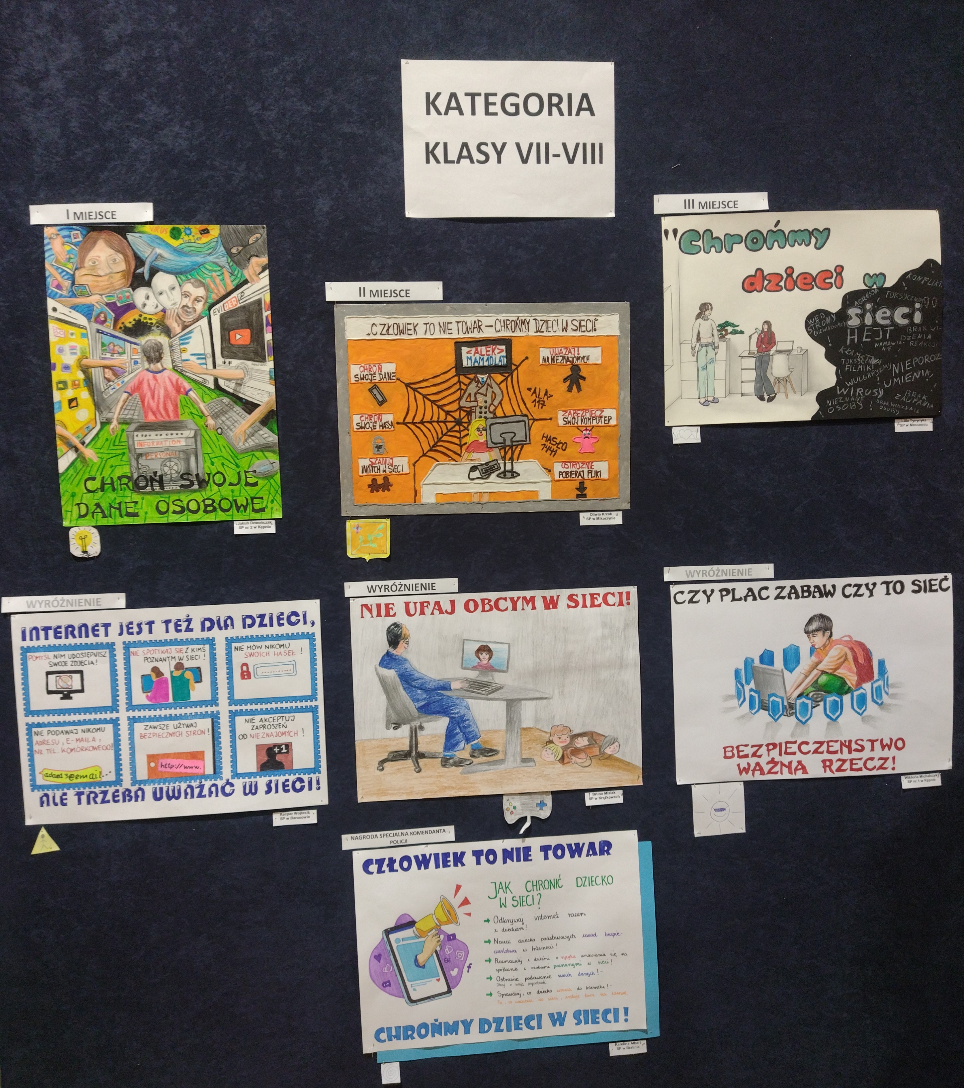 W dniu 13.03.2024 r. odbyła się uroczysta gala podsumowująca VIII edycji Powiatowego Konkursu Plastycznego z Profilaktyki Uzależnień pt. „Człowiek to nie towar- chrońmy dzieci w sieci!”, w której wzięło udział 17 szkół, 145 prac.