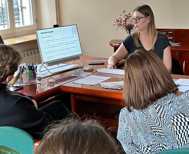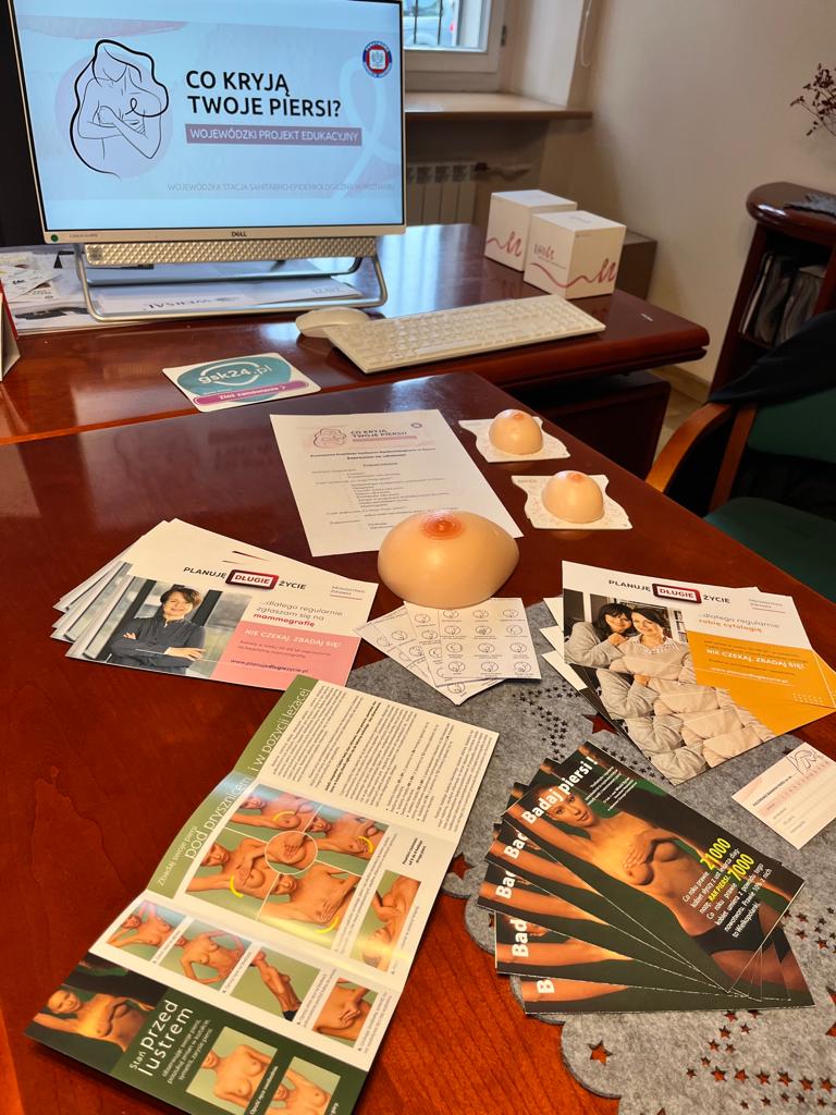 W dniu 13.11.2023 r. odbyło się szkolenie w ramach projektu profilaktyki raka piersi pt.: „Co kryją Twoje piersi?”. W szkoleniu wzięły udział pracownice Powiatowej Stacji Sanitarno- Epidemiologicznej w Kępie.