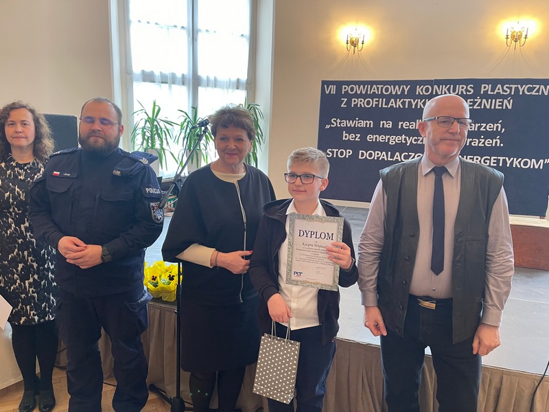 W uroczystości brali udział: Podinspektor Lechosław Wróbel, Aspirant sztabowy Karolina Paprocka, która jednocześnie reprezentowała Gminną Komisję ds. Rozwiązywania Problemów Alkoholowych w Baranowie, Sierżant sztabowy Filip Ślęk, Dyrektor Powiatowej Stacji Sanitarno – Epidemiologicznej w Kępnie Wanda Lepka, Jan Kasendra – przewodniczący Komisji oceniającej prace. Sala w SP w Mroczeniu gościła również nagrodzonych uczestników wraz z pedagogami i rodzicami.