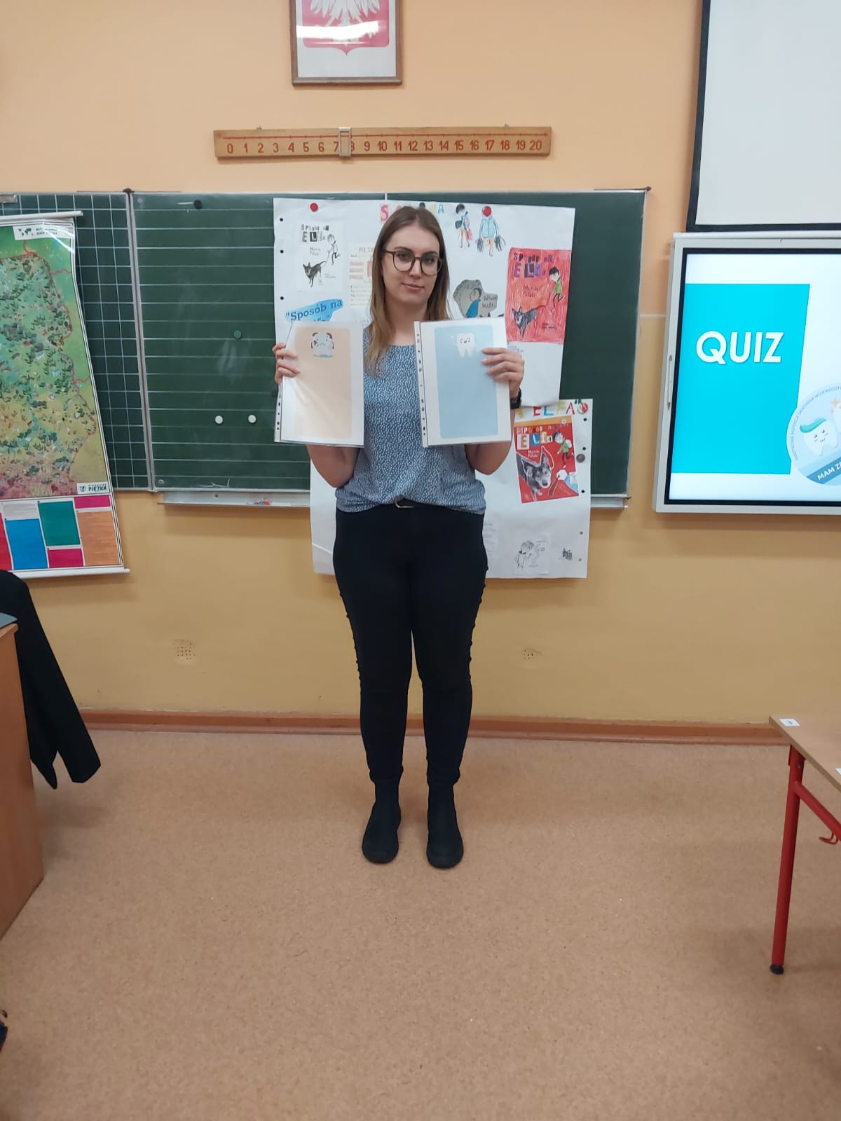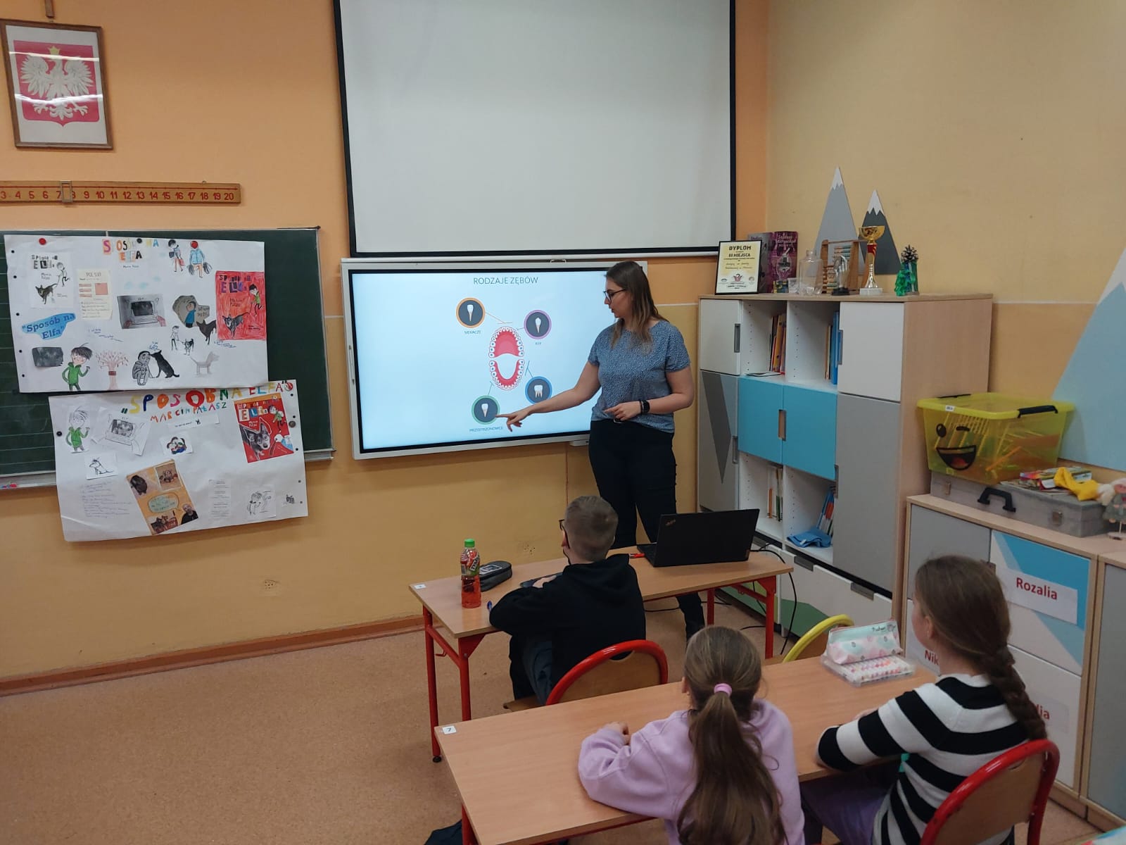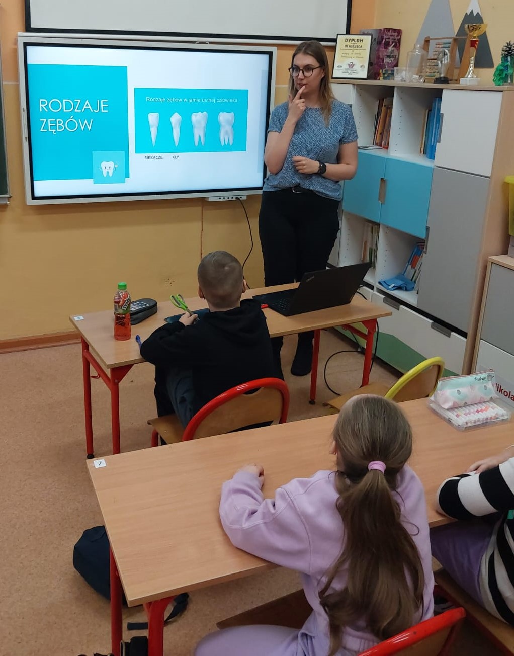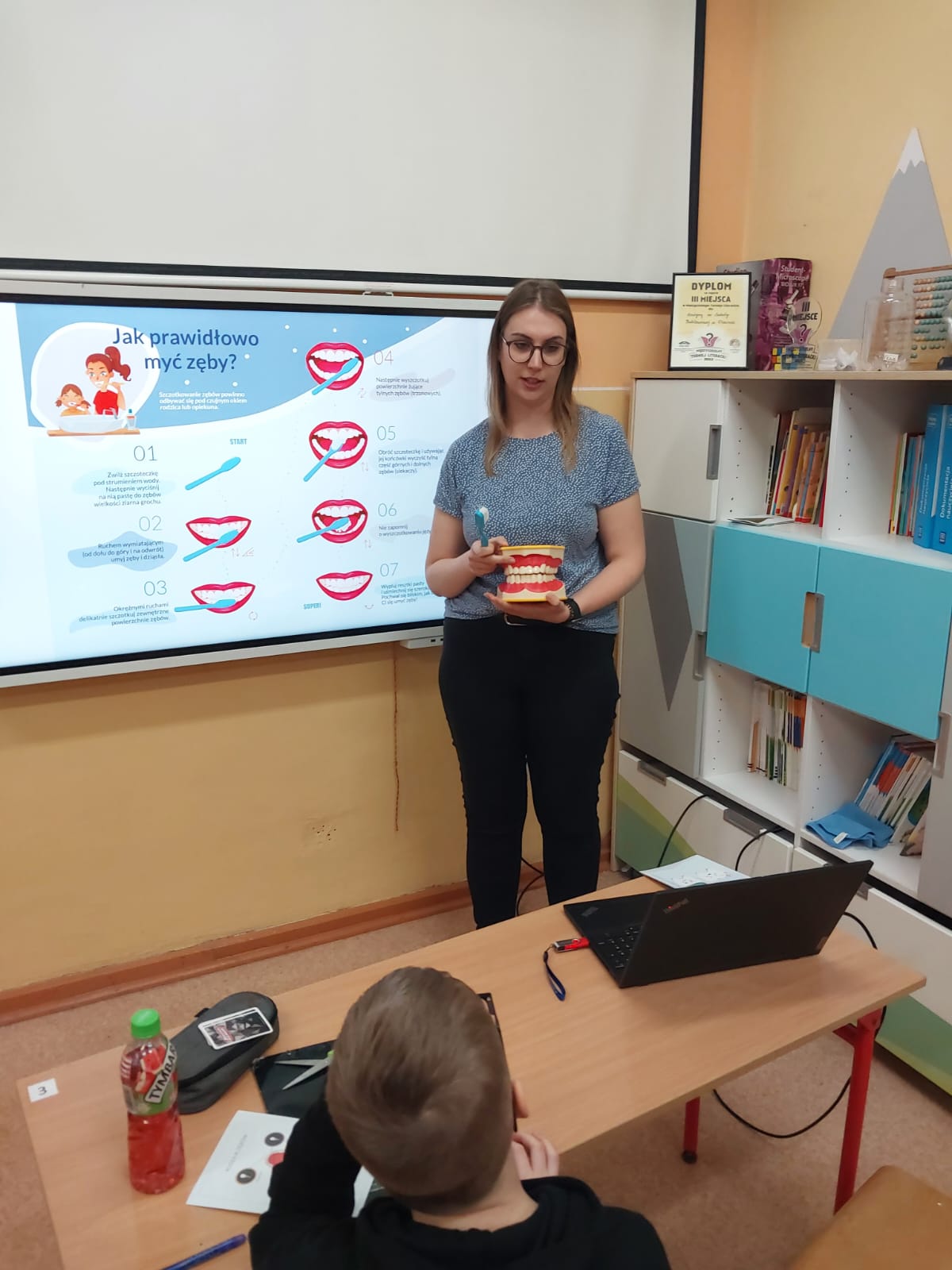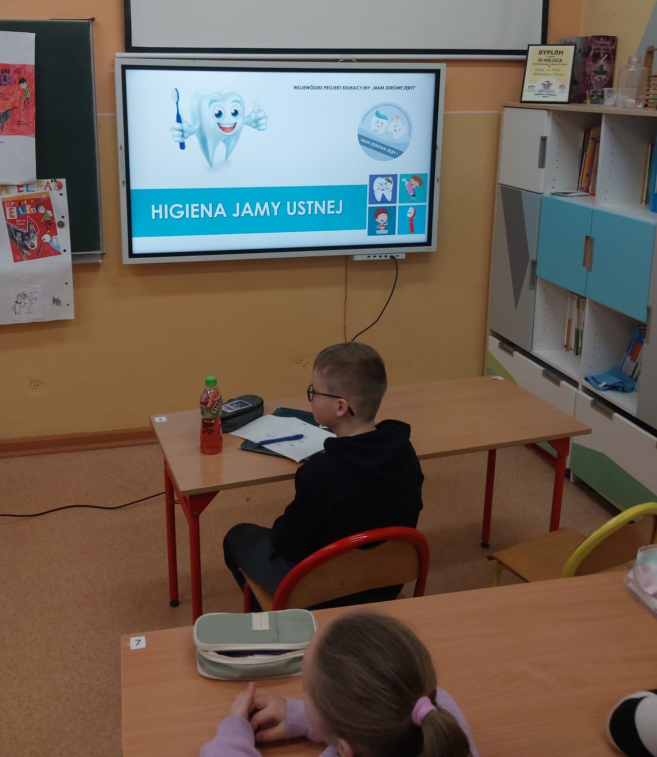 Na zakończenie, każdy uczeń otrzymał kalendarz mycia zębów oraz broszurkę opracowaną przez Wojewódzką Stację Sanitarno-Epidemiologiczną w Poznaniu. Klasie przekazano dyplom za udział w zajęciach na temat higieny jamy ustnej.
