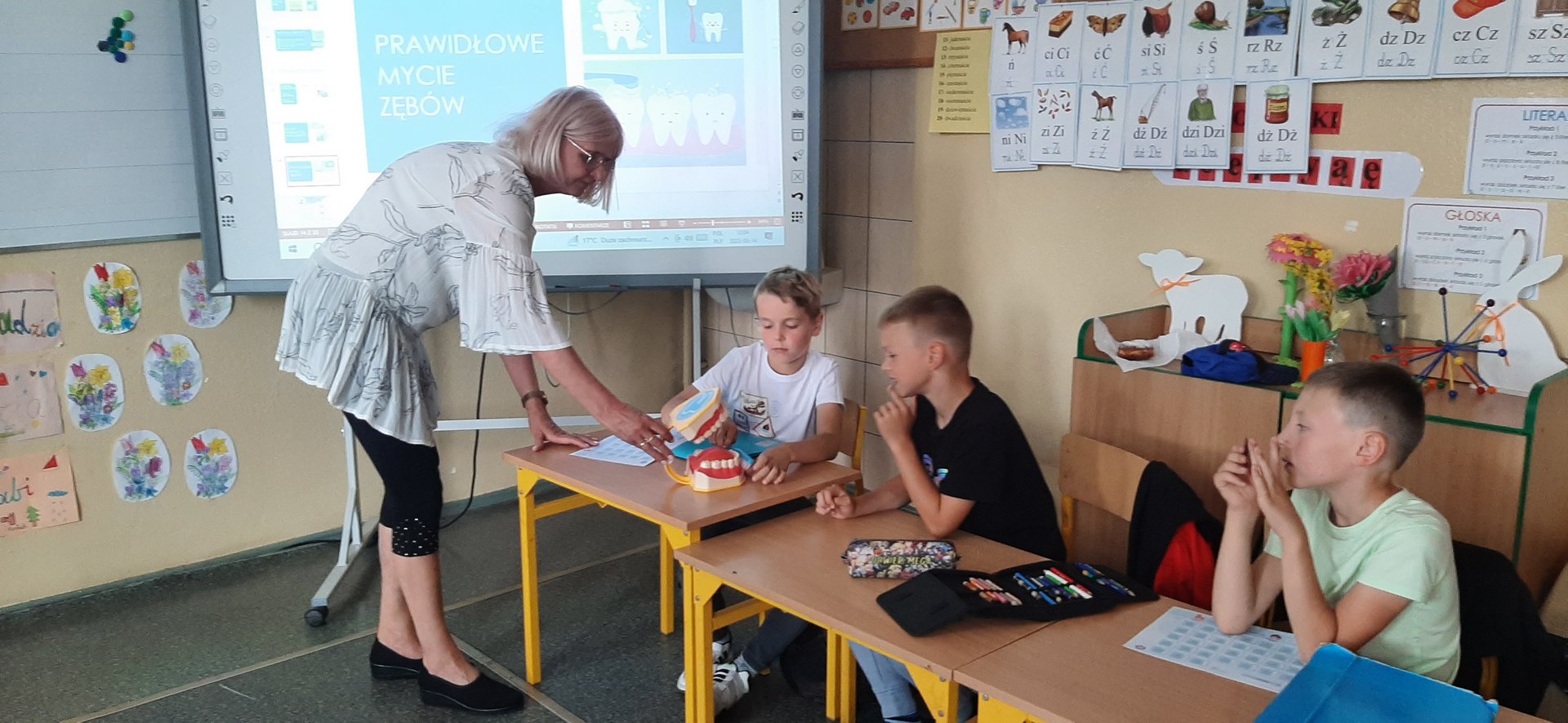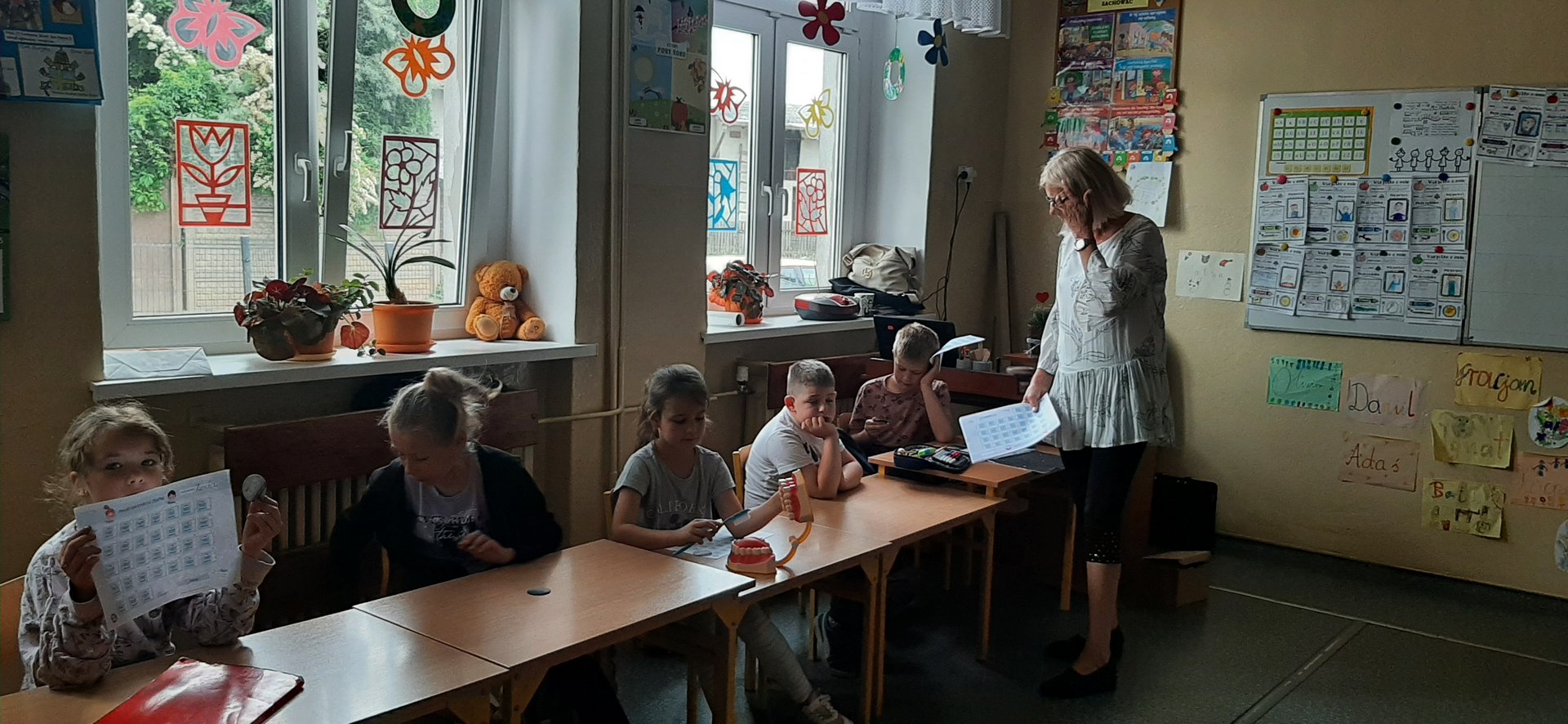 W ramach projektu edukacyjnego w zakresie higieny jamy ustnej pt.: „Mam zdrowe zęby!” pracownik Sekcji Oświaty Zdrowotnej i Promocji Zdrowia Powiatowej Stacji Sanitarno-Epidemiologicznej w Kępnie – Ewa Marszałek w dniu 14 czerwca 2023 roku przeprowadziła działania informacyjno-edukacyjne wśród uczniów klasy I i II w Szkole Podstawowej w Olszowie oraz wśród uczniów klasy I w Zespole Szkół w Laskach.