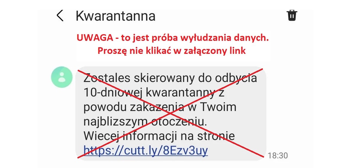 Główny Inspektor Sanitarny ostrzega przed próbami wyłudzania danych od nadawcy Kwarantanna.