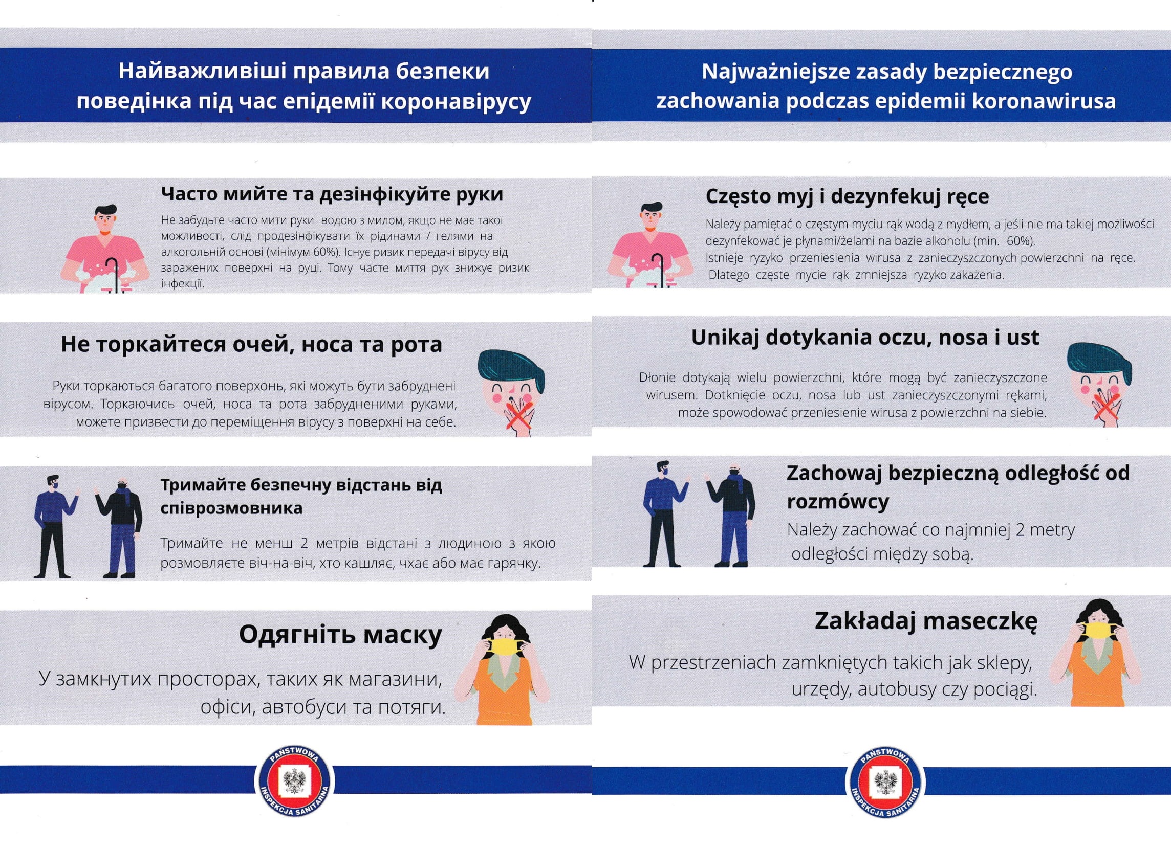 Najważniejsze zasady bezpiecznego zachowania podczas epidemii koronawirusa / найважливіші Правила безпечної поведінки під час епідемії коронавірусу 17.03.2022 Zdjęcia (1) Pokaż zdjęcie 1 z galerii.