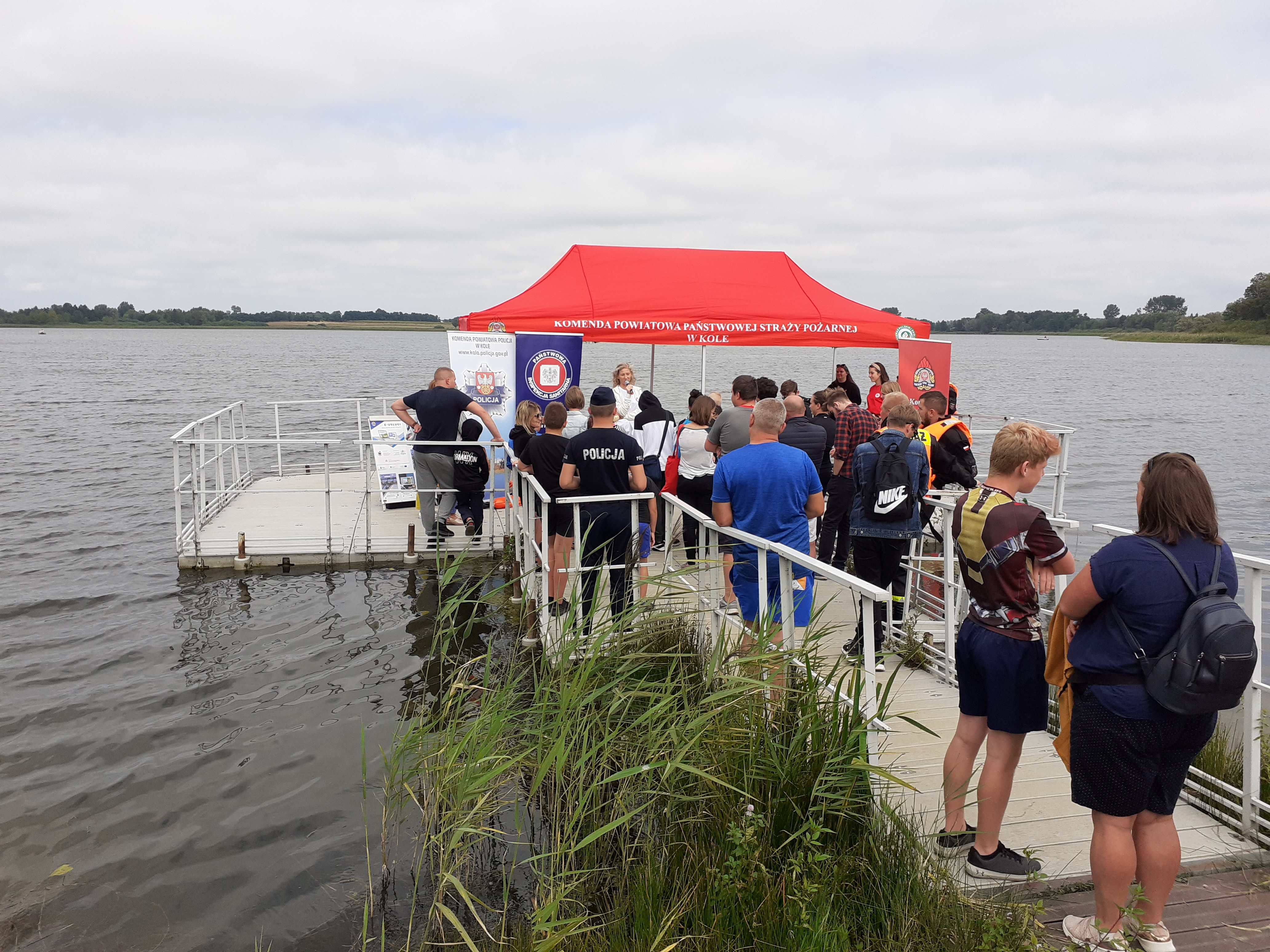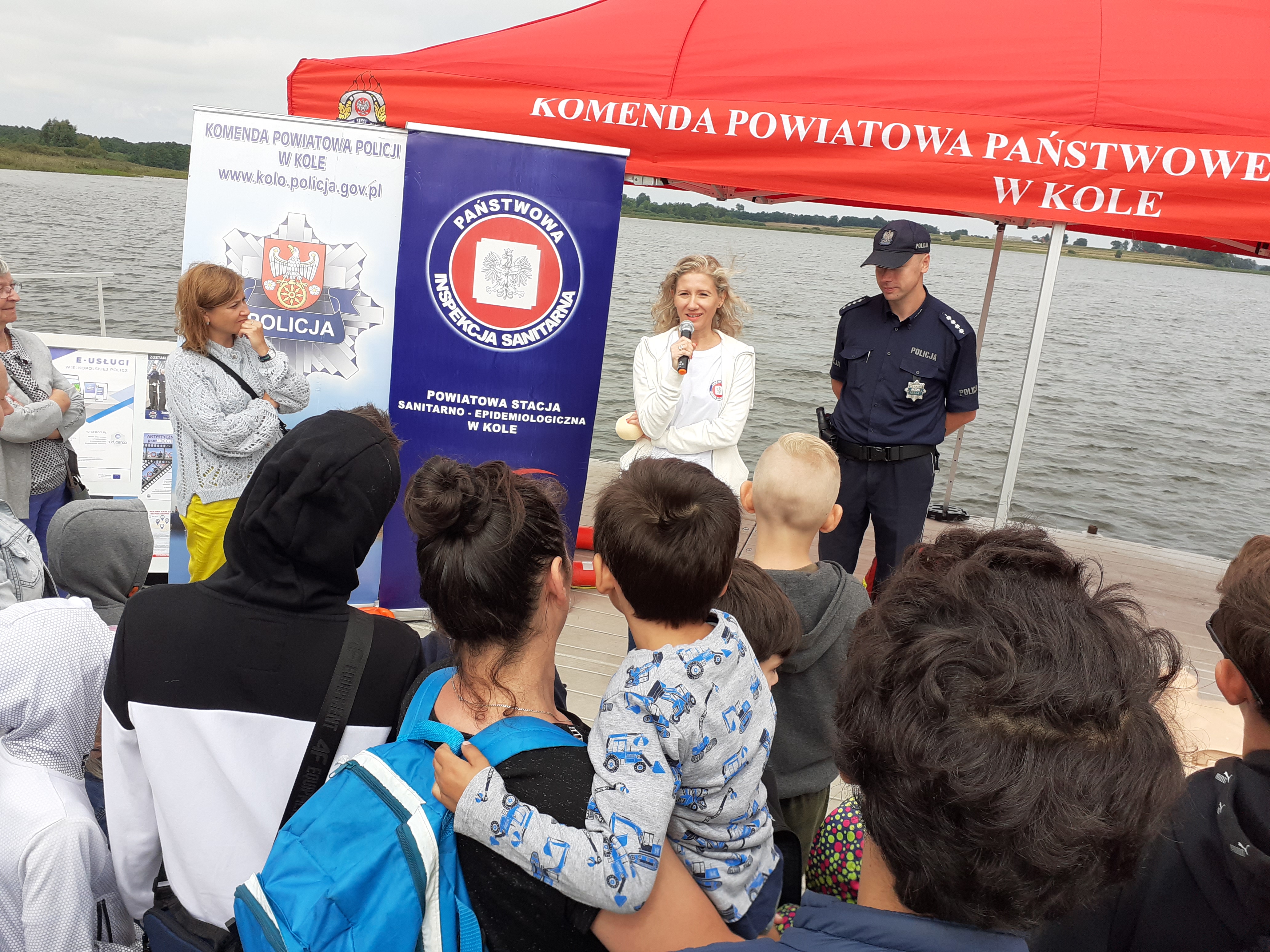 z policjantami z Komendy Powiatowej Policji w Kole, ratownikami Wodnego Ochotniczego Pogotowia Ratunkowego w Kole, strażakami PSP Koło, OSP Brdów i OSP Patrzykowo oraz przedstawicielami kolskiego oddziału Polskiego Czerwonego Krzyża wszystkim zgromadzonym osobom przypominali o bezpiecznych formach spędzania wolnego czasu. Apelowali by zapoznawać się z obowiązującym regulaminem i znakami ustawionymi na plażach oraz wybierać wyłącznie strzeżone kąpieliska. Policjanci przestrzegali przed niebezpieczeństwem związanym z zażywaniem narkotyków, alkoholu i dopalaczy, które często