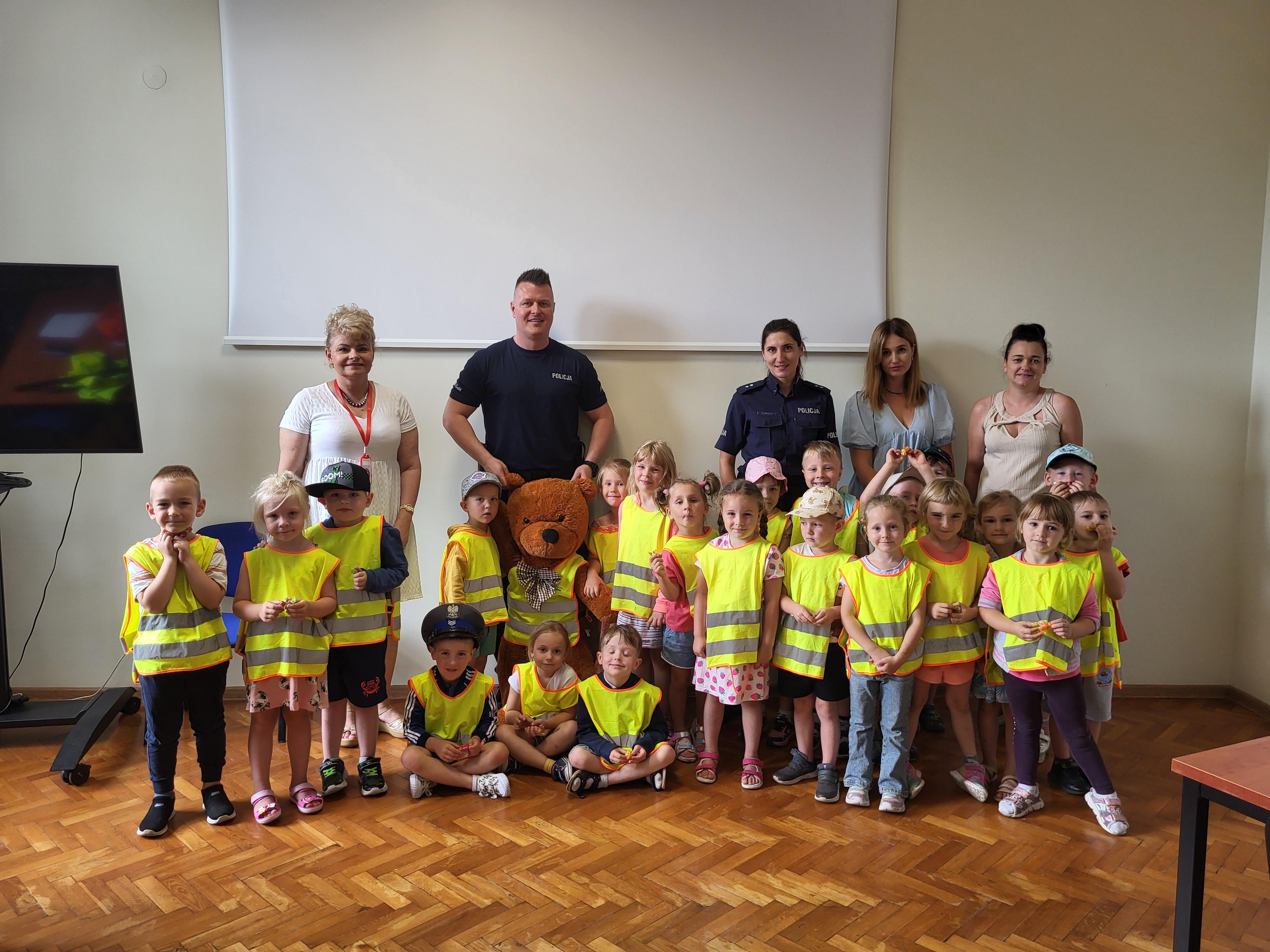W ramach akcji Bezpieczne Wakacje 2024 r. na wycieczkę do Kołobrzegu przyjechały przedszkolaki ze Starych Bielic. Dzieci wzięły udział w zajęciach edukacyjnych przeprowadzonych w Komendzie Powiatowej Policji przez przedstawicieli Policji wspólnie z pracownikiem PSSE w Kołobrzegu. Rozmawialiśmy na temat bezpieczeństwa nad wodą, zasad zdrowego odżywiania, zasad higieny oraz pierwszej pomocy.