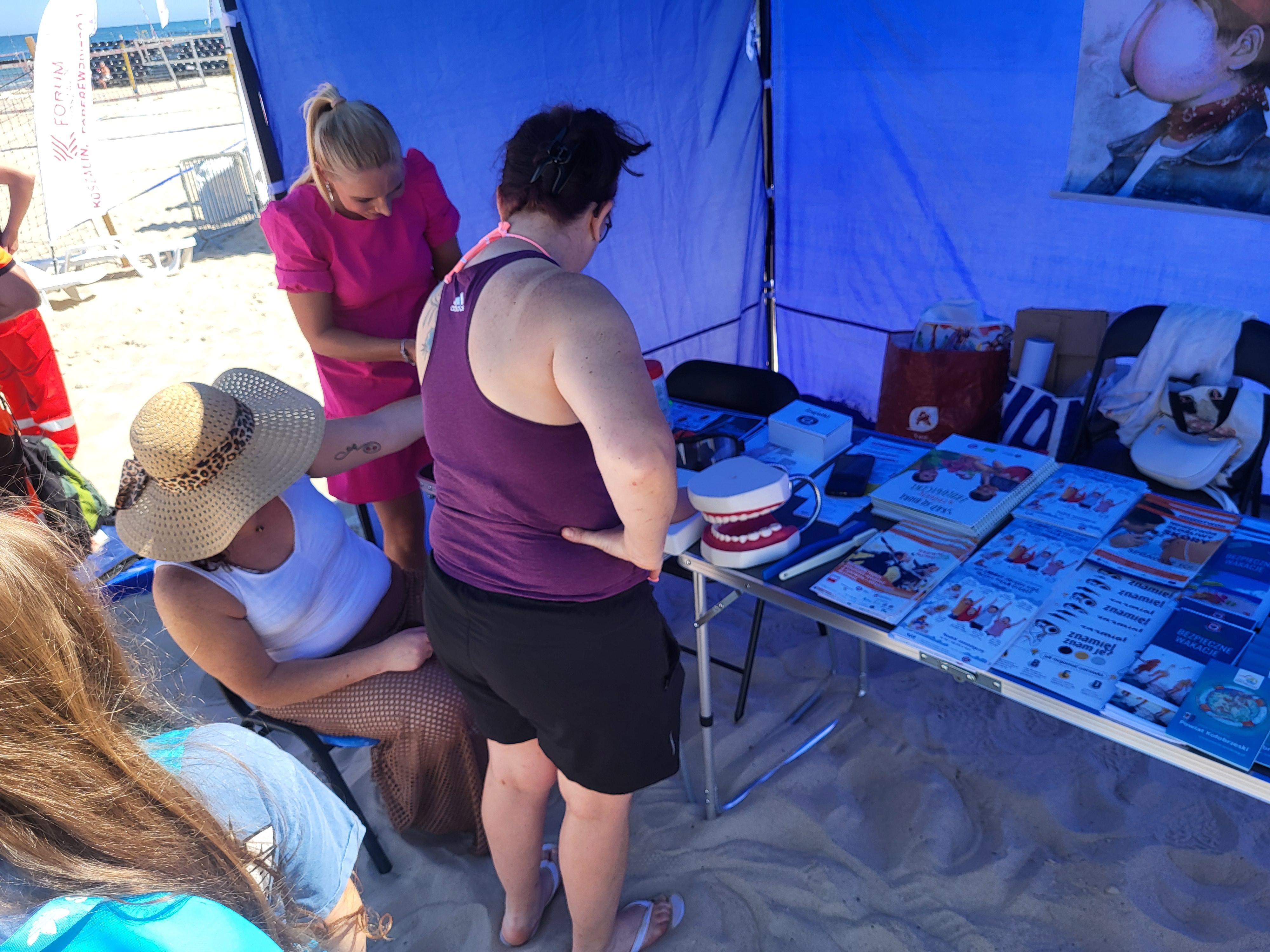 Minęła połowa wakacji. PSSE w Kołobrzegu w ramach akcji Bezpieczne Wakacje 2024 kolejny raz zorganizowała stoisko edukacyjno-profilaktyczne na plaży we współpracy ze Stowarzyszeniem Grupy Ratowniczej ,,Paramedic’’ oraz Straży Pożarnej. Prowadziliśmy szeroko pojętą edukację na temat prozdrowotnych zachowań podczas wypoczynku letniego oraz naukę pierwszej pomocy.