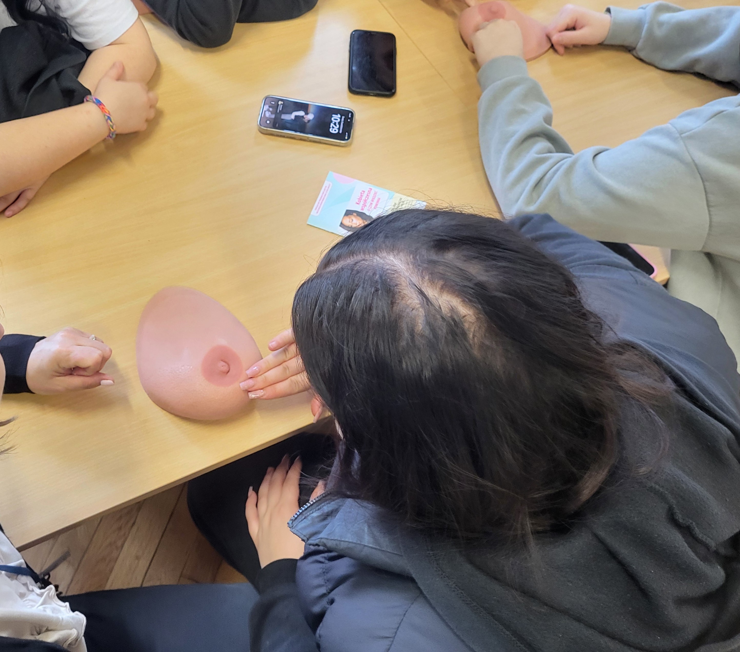 Prócz prelekcji oraz przeprowadzonego instruktażu samobadania piersi uczennice miały możliwość przeprowadzenia badania piersi na fantomie znajdując w nich zlokalizowane guzki.