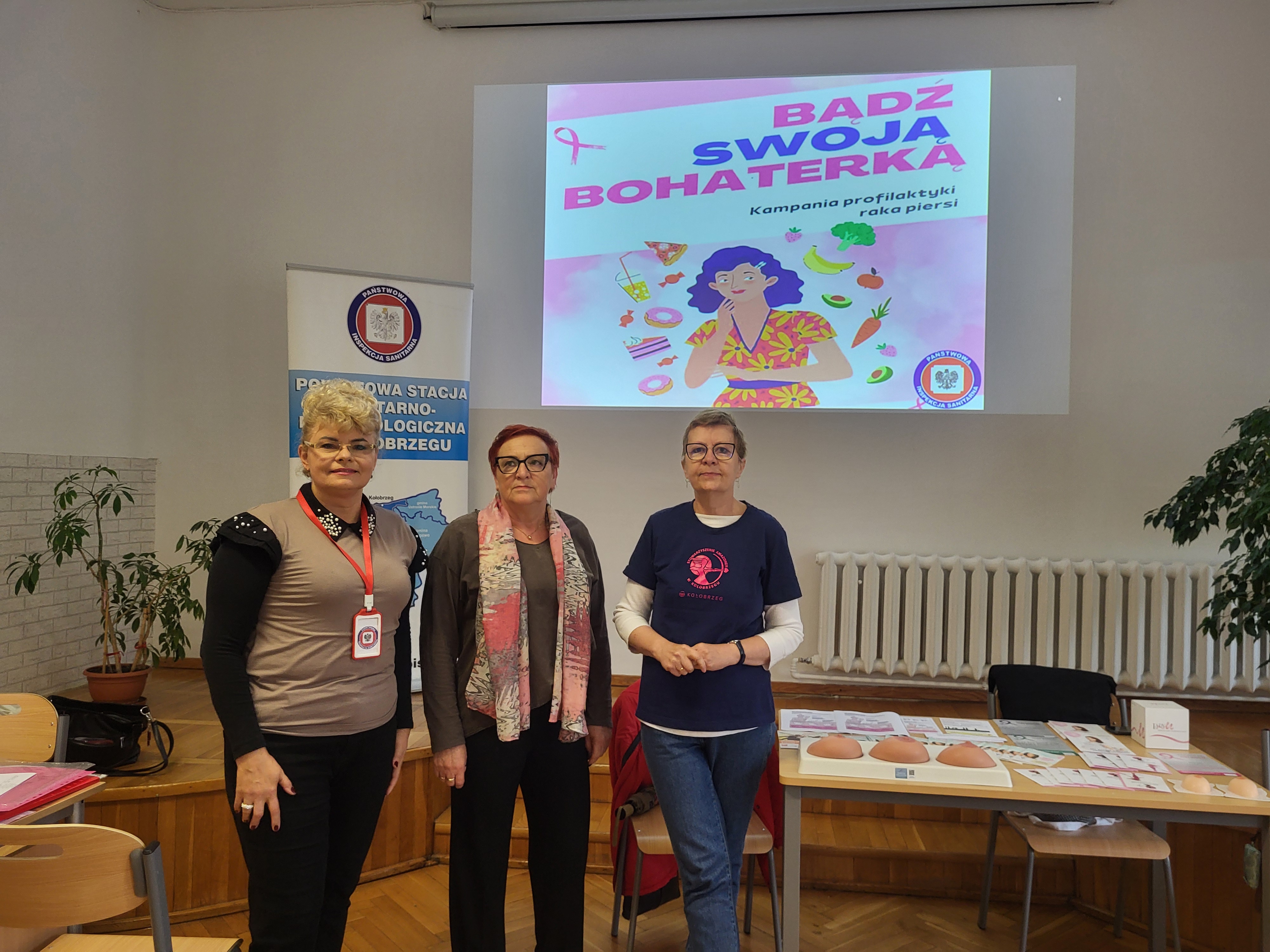 Miesiąc październik jest tzw. Miesiącem Świadomości Raka Piesi. Z tej okazji Powiatowa Stacja Sanitarno-Epidemiologiczna w Kołobrzegu wraz z Członkiniami Stowarzyszenia Amazonek zorganizowała spotkanie z młodzieżą w Zespole Szkół nr 2 w Kołobrzegu na temat profilaktyki raka piersi.