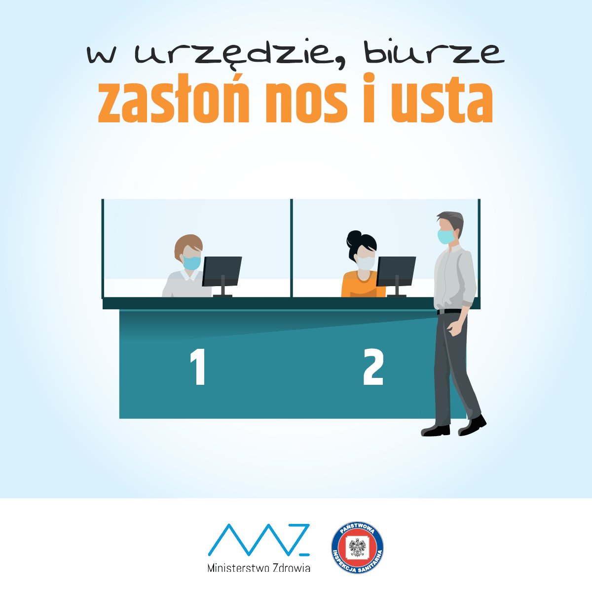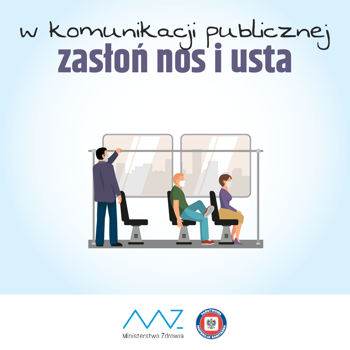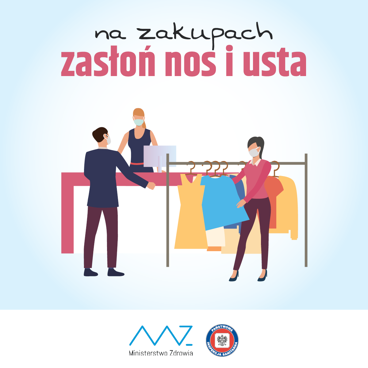 Zasłanianie ust i nosa obowiązuje w zamkniętych przestrzeniach użyteczności publicznej, w sklepach, transporcie publicznym, na przystanku oraz podczas obsługi interesantów i klientów.