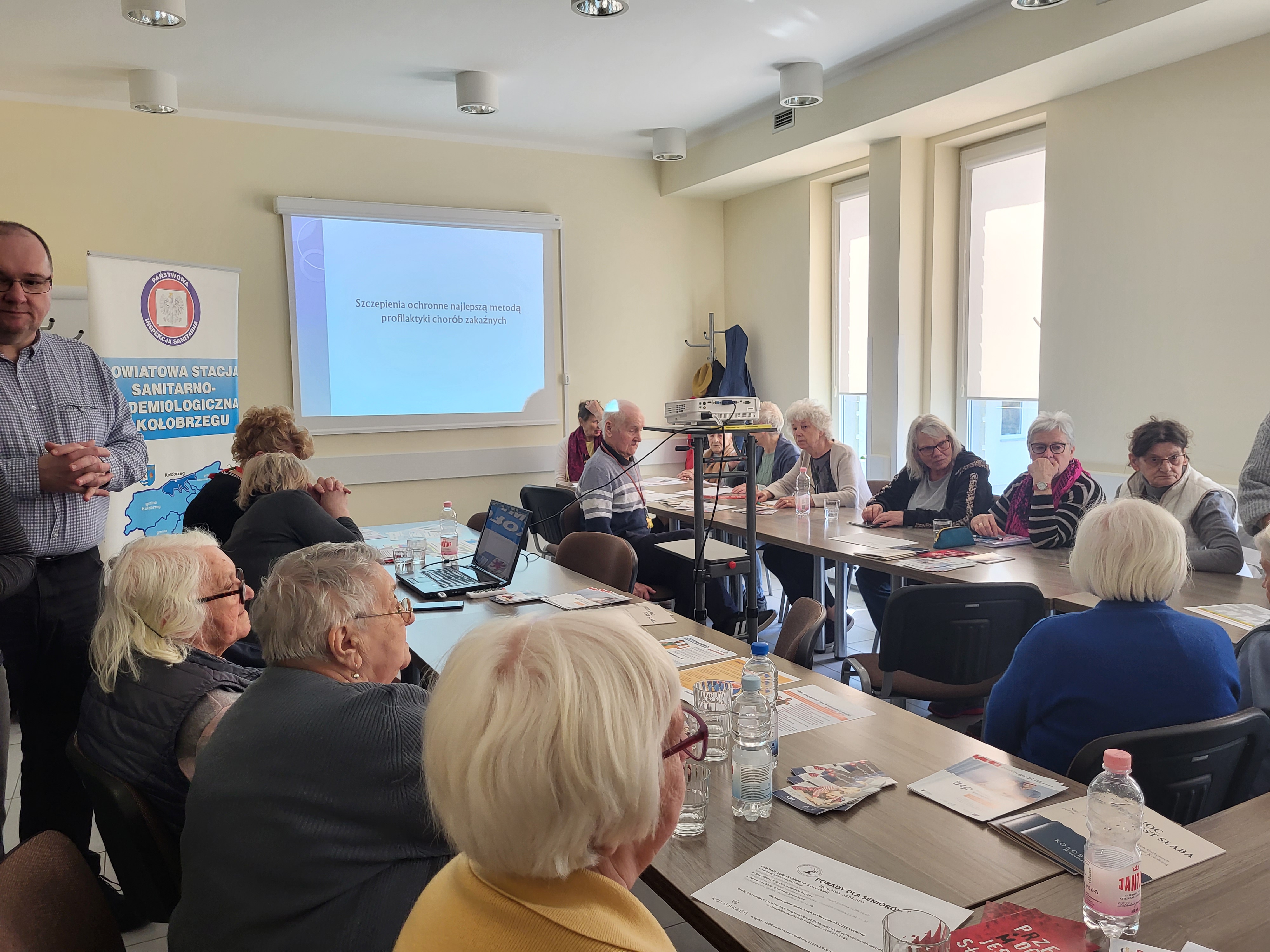 Dnia 26.04.2023 r. odbyło się spotkanie w Centrum Spraw Społecznych Kołobrzegu, w którym uczestniczyli członkowie Klubu Seniora w ramach obchodów Europejskiego Tygodnia Szczepień. Celem spotkania było zwiększenie wiedzy społeczeństwa na temat korzyści wynikających ze szczepień oraz ryzyka wynikającego ze spadku liczby osób zaszczepionych. Edukacja osób starszych i ich bliskich na temat korzyści płynących ze szczepień ochronnych jako metody profilaktyki chorób zakaźnych jest bardzo istotna, gdyż grupą szczególnie narażoną na ciężki przebieg chorób zakaźnych są seniorzy, a szczepienia zapobiegające chorobom i ich powikłaniom są jednym z najbardziej efektywnych osiągnięć medycyny.