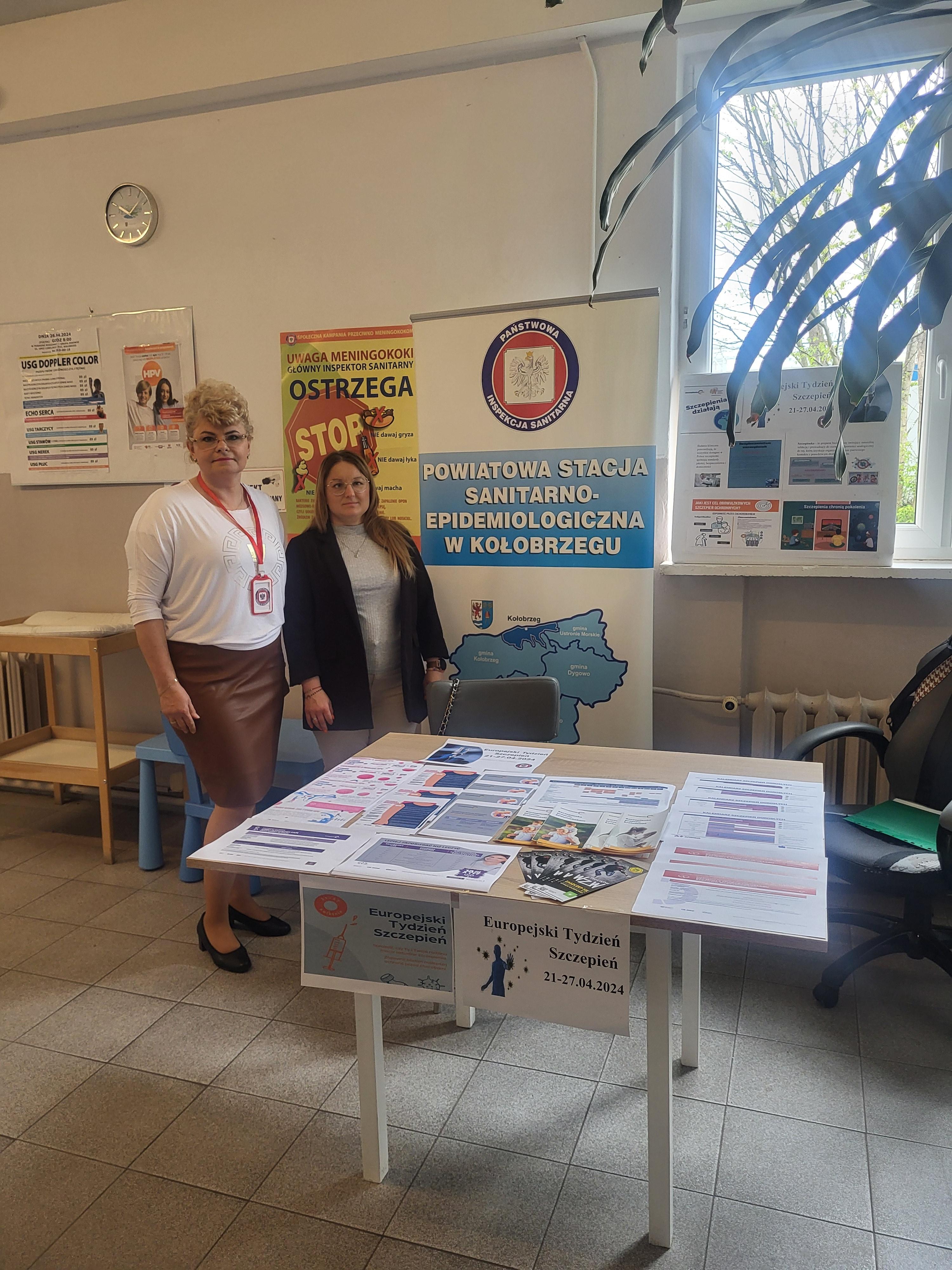 Dnia 25.04.2024 r. w ramach obchodów Europejskiego Tygodnia Szczepień PSSE w Kołobrzegu zorganizowała stoisko informacyjno-edukacyjne w przychodni Kolmed-Center SP. z o.o. Pracownicy sanepidu rozmawiali z pacjentami na temat znaczenia szczepień ochronnych, które są najskuteczniejszym narzędziem zwalczania chorób zakaźnych. Zachęcano osoby dorosłe do poddawania się szczepieniom, gdyż profilaktyka chorób zakaźnych nie kończy się na dzieciństwie, a szczepienia osób dorosłych to inwestycja w długie i zdrowe życie.