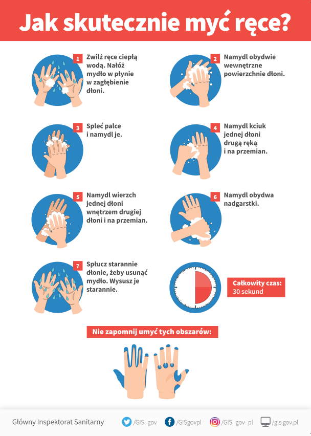 Dokładne umycie rąk powinno zająć ok. 30 sekund.