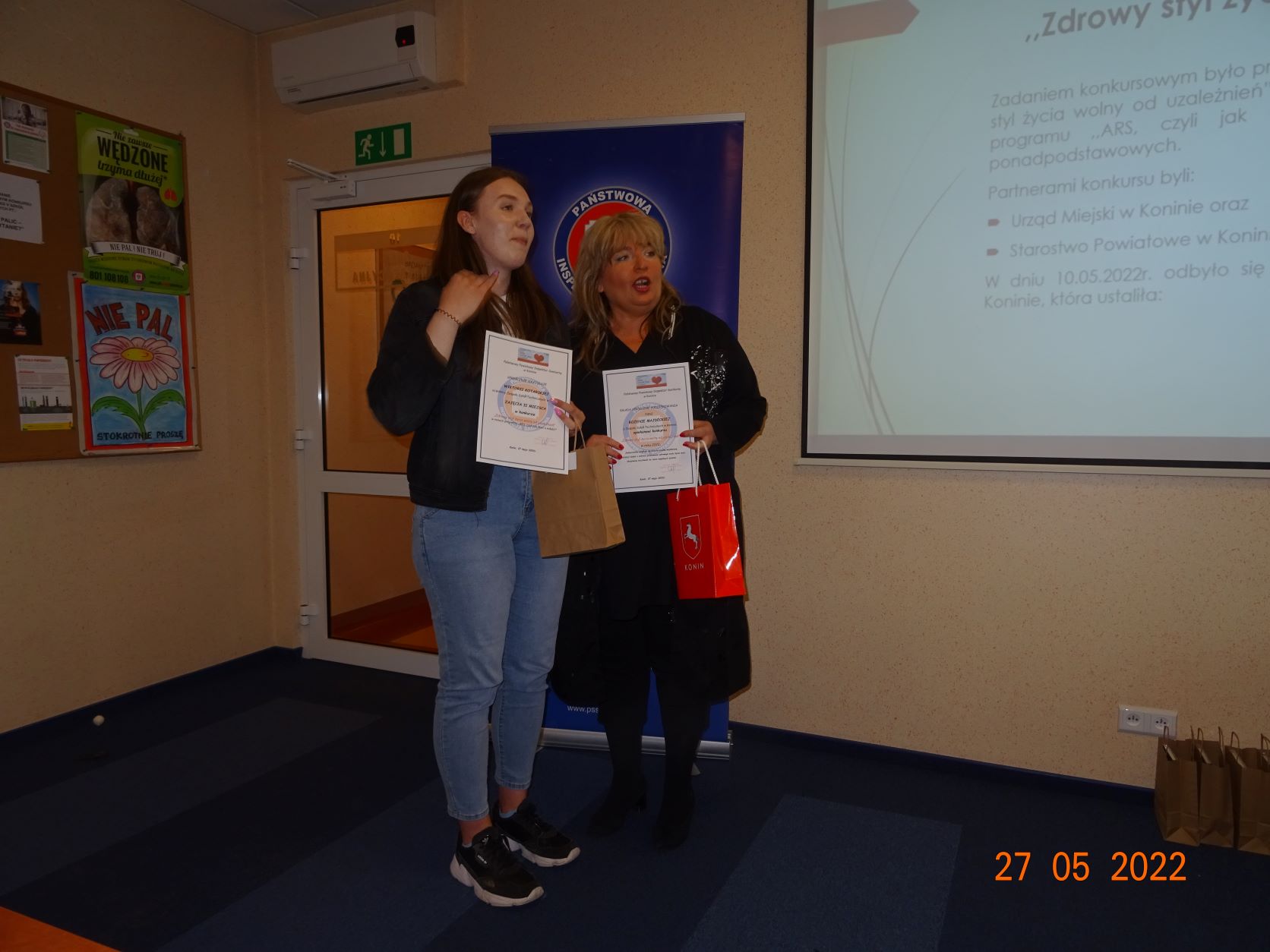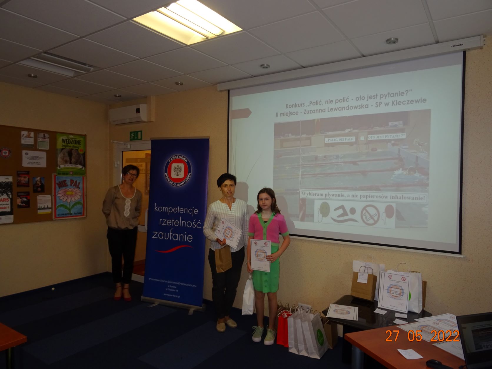 W trakcie spotkania podsumowano konkursy, wręczono nagrody, zaprezentowano prace. Ponadto uczeń z Zespołu Szkół Centrum Kształcenia Ustawicznego przedstawił swoją prezentację, która została najwyżej oceniona przez komisję konkursową. Uczestnicy spotkania obejrzeli film edukacyjny poświęcony problematyce palenia tytoniu. Partnerami konkursów byli Urząd Miejski w Koninie oraz Starostwo Powiatowe w Koninie.