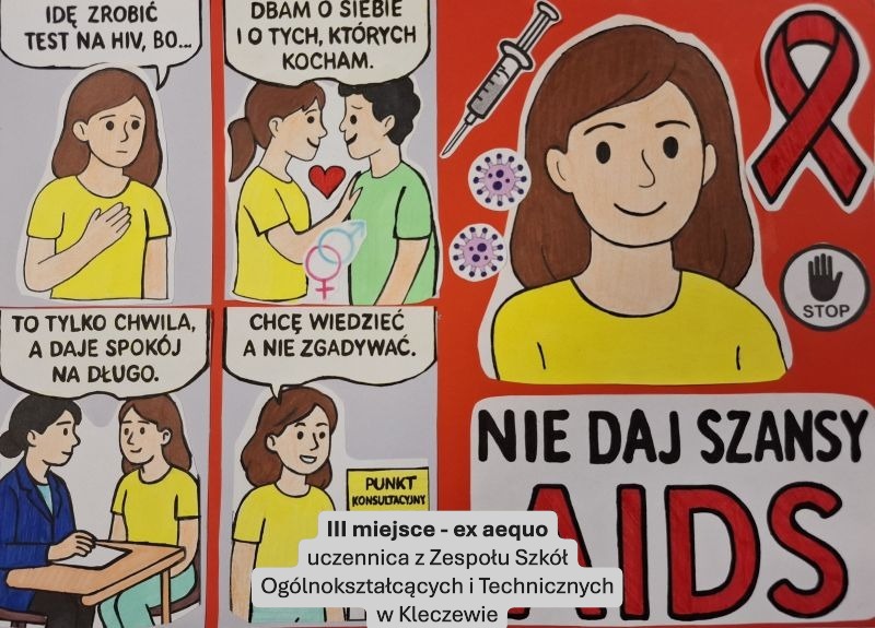 Państwowy Powiatowy Inspektor Sanitarny w Koninie informuje, że po raz XXIII odbył się wojewódzki konkurs pod hasłem ,,Nie daj szansy AIDS”. Organizatorem konkursu była Wojewódzka Stacja Sanitarno-Epidemiologiczna w Poznaniu, Oddział Higieny Dzieci, Młodzieży i Promocji Zdrowia. Partnerami konkursu na etapie powiatowym był Urząd Miejski w Koninie oraz Starostwo Powiatowe w Koninie.