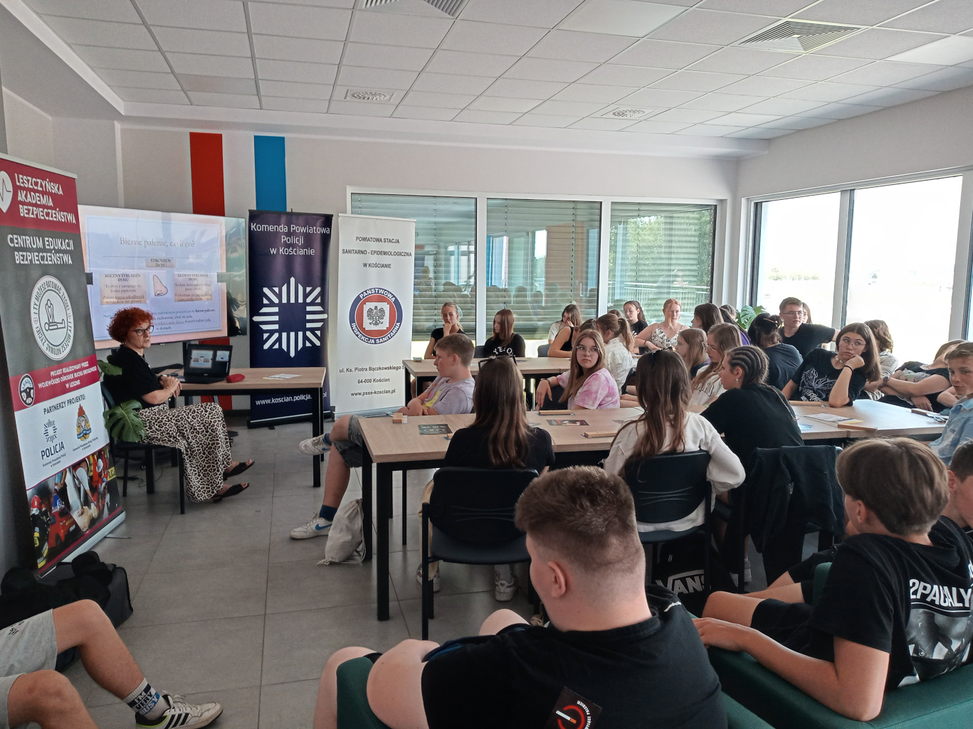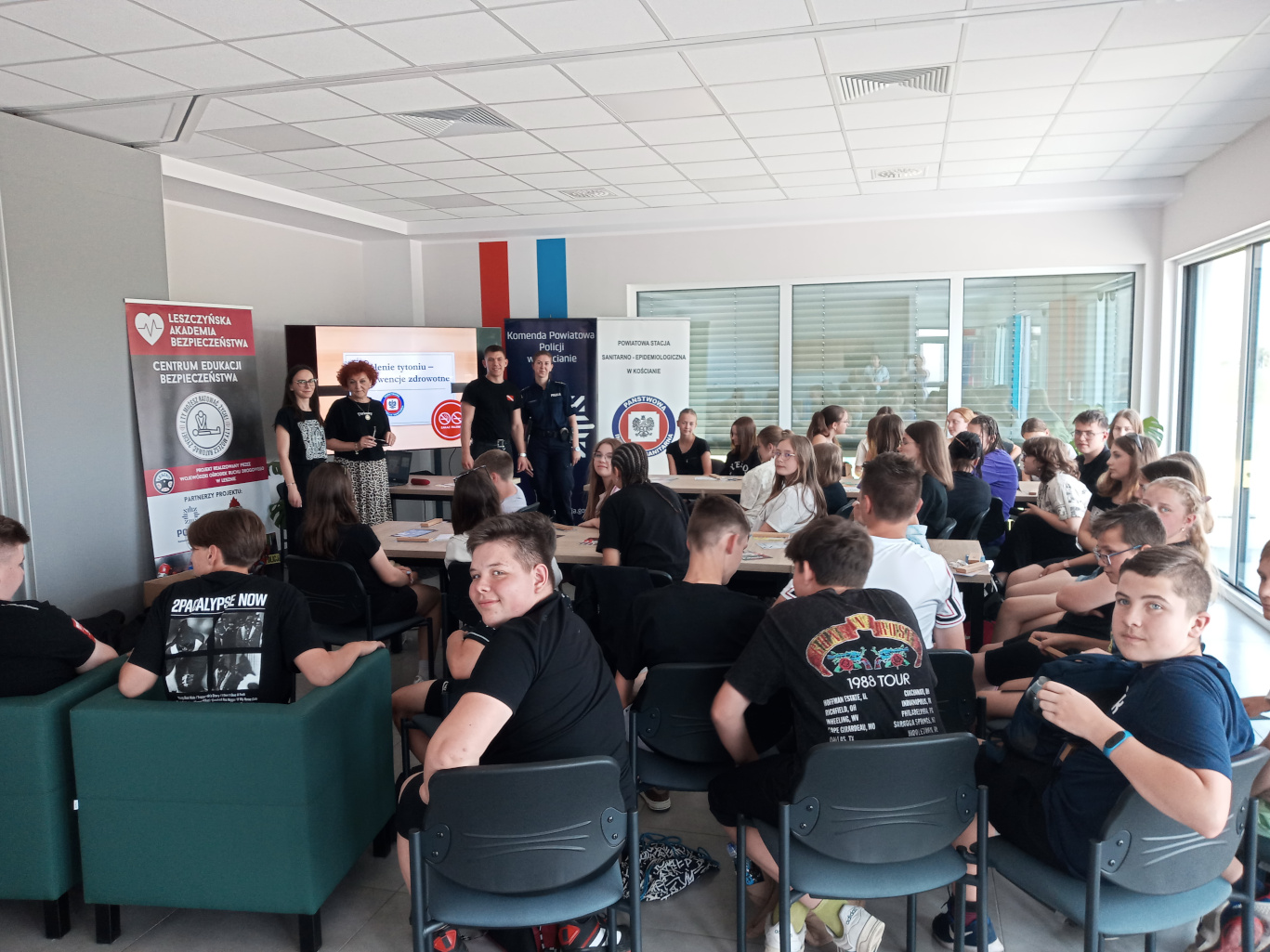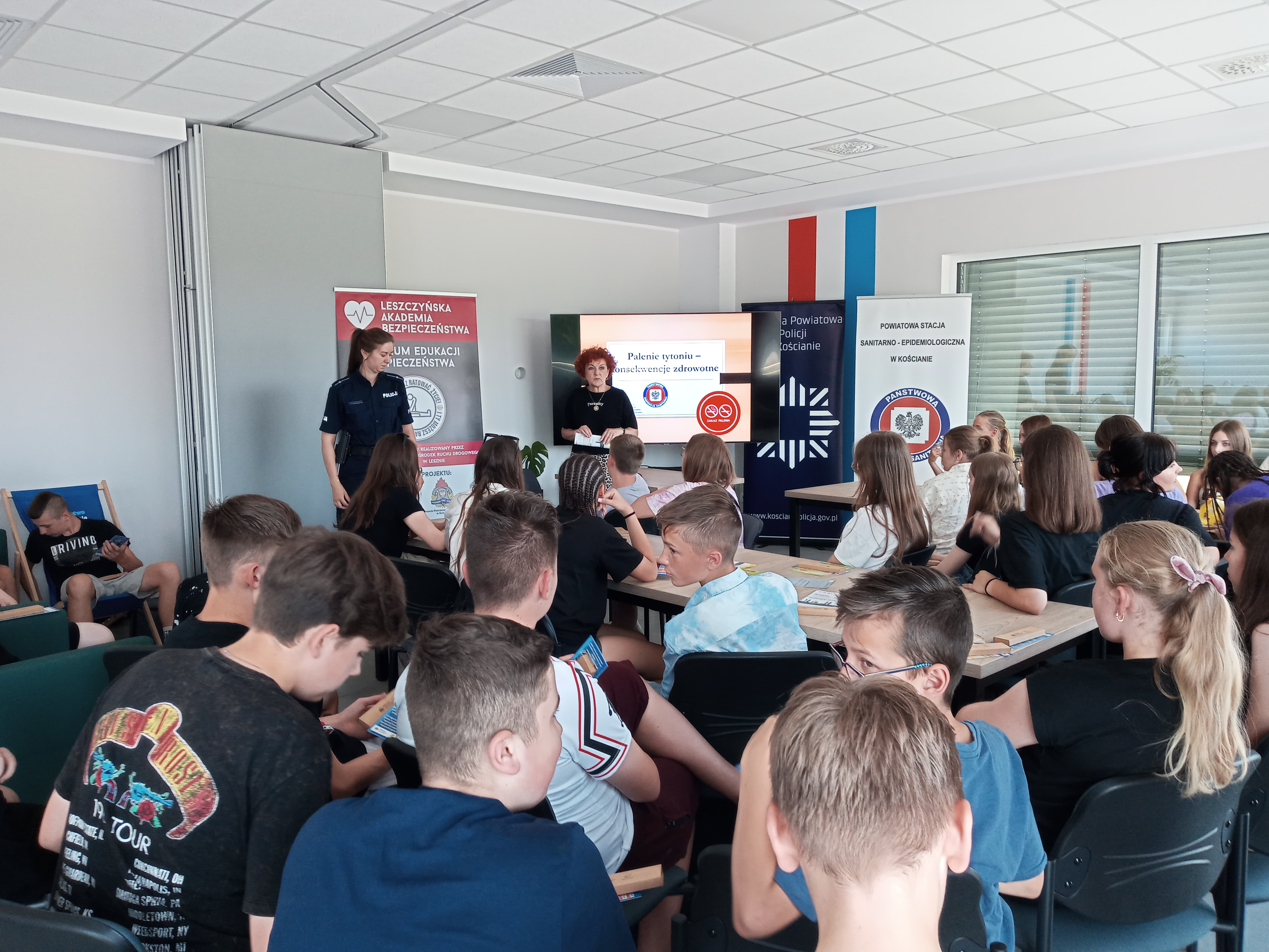 Pracownicy Stanowiska Pracy ds. Oświaty Zdrowotnej i Promocji Zdrowia PSSE w Kościanie podczas spotkań wygłosili prelekcję na temat konsekwencji zdrowotnych palenia tytoniu i inhalowania e-papierosów wobec organizmu palacza i osób z jego otoczenia. Uczniowie mogli zaopatrzyć się także w tematyczne ulotki dotyczące szkodliwości palenia tytoniu i inhalowania e-papierosów.
