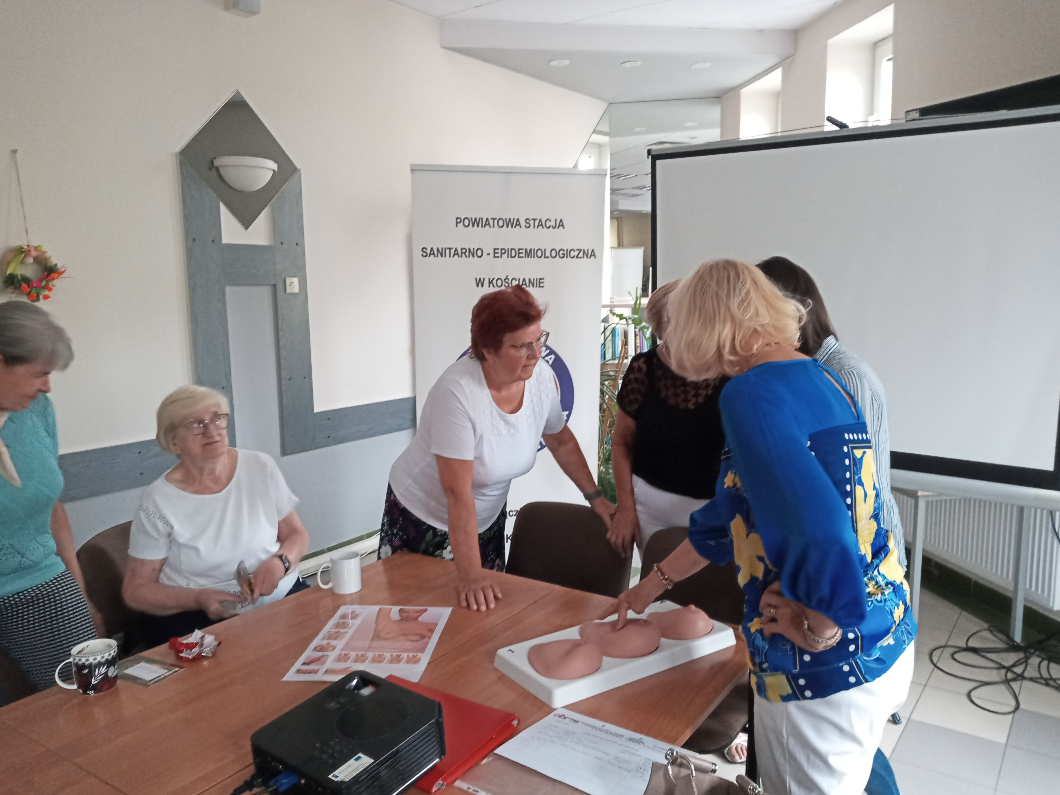 w Kościanie przeprowadzili szkolenie pt. "Co kryją Twoje piersi?" wśród uczestniczek grupy „Dziarskie Babki” działającej w ramach programu „Aktywny Senior” przy Ośrodku Pomocy Społecznej w Kościanie.