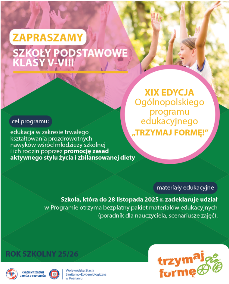 Informujemy, że jest już możliwa rejestracja do XIX edycji Ogólnopolskiego Programu Edukacyjnego Trzymaj Formę! w roku szkolnym 2025/2026.