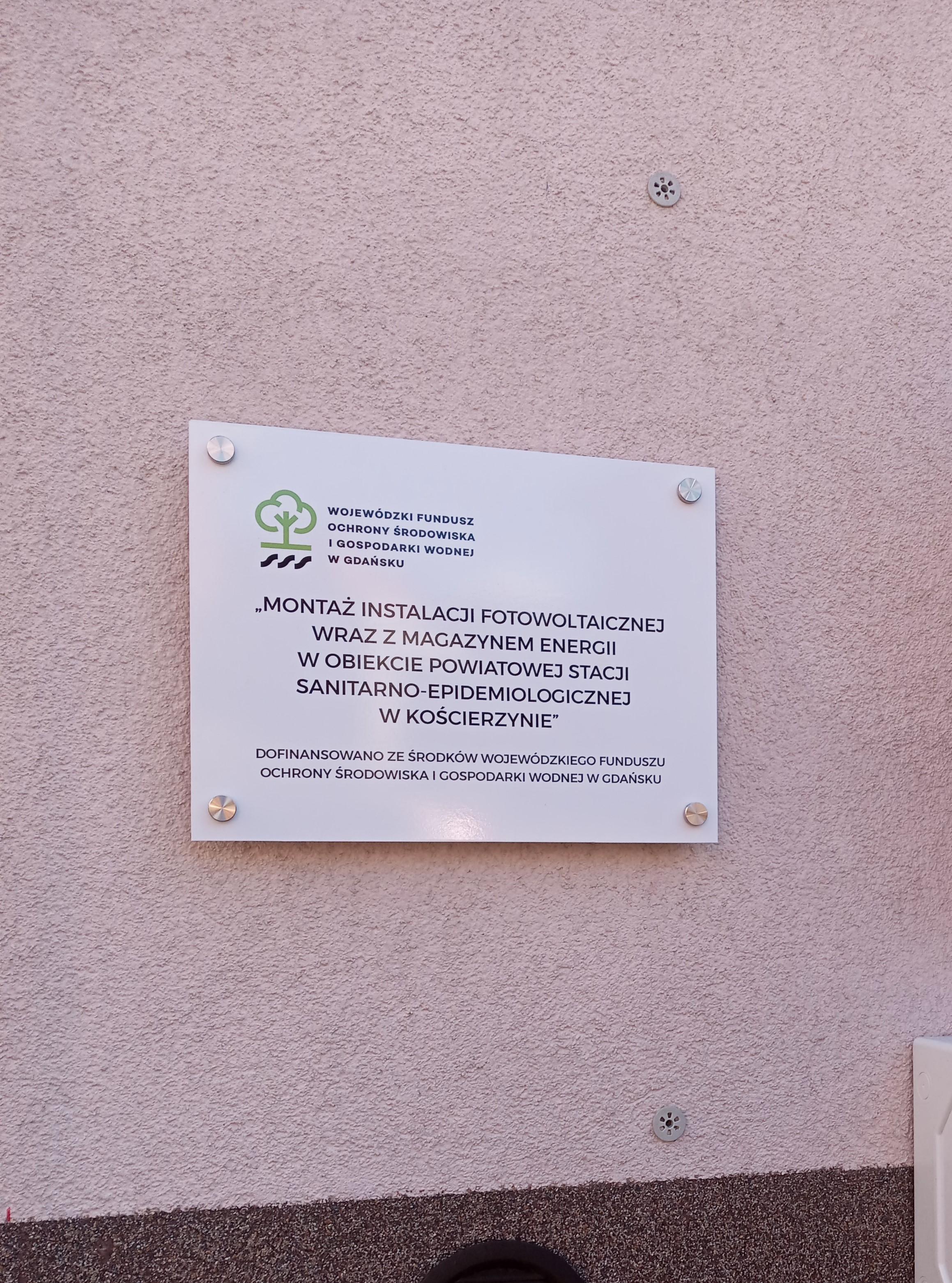 Dzięki dofinansowaniu w ramach realizacji zadania inwestycyjnego zamontowano instalację fotowoltaiczną o łącznej mocy 13,56 kW wraz z magazynem energii o pojemności 10 kWh. Panele zostały zamontowane na dachu budynku Powiatowej stacji Sanitarno-Epidemiologicznej w Kościerzynie, na konstrukcji balastowej bez ingerencji w strukturę pokrycia dachowego. Produkowana energia elektryczna zostanie wykorzystywana na potrzeby własne Stacji, a nadwyżka zostanie przekazywana do sieci elektroenergetycznej.
