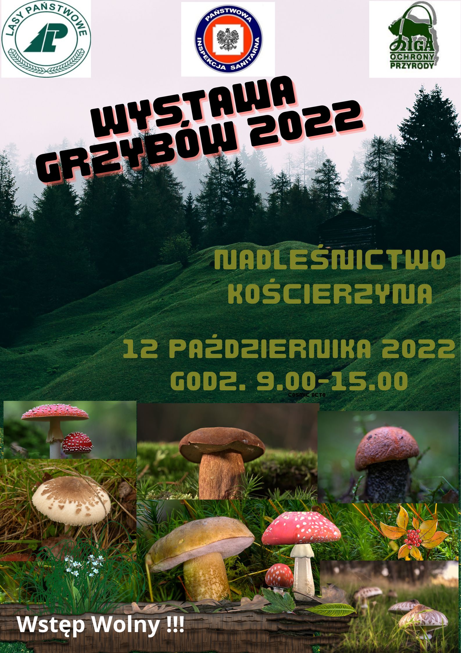 Państwowy Powiatowy Inspektor Sanitarny w Kościerzynie wraz z Nadleśnictwem Kościerzyna oraz Ligą Ochrony Przyrody w Kościerzynie zapraszają na Wystawę Grzybów połączoną z obejrzeniem ekosystemu leśnego w dniu 12.10.2022r., od godziny 9.00 do 15.00 w Nadleśnictwie Kościerzyna przy ul. M.C. Skłodowskiej 6 w Kościerzynie. Wstęp wolny.