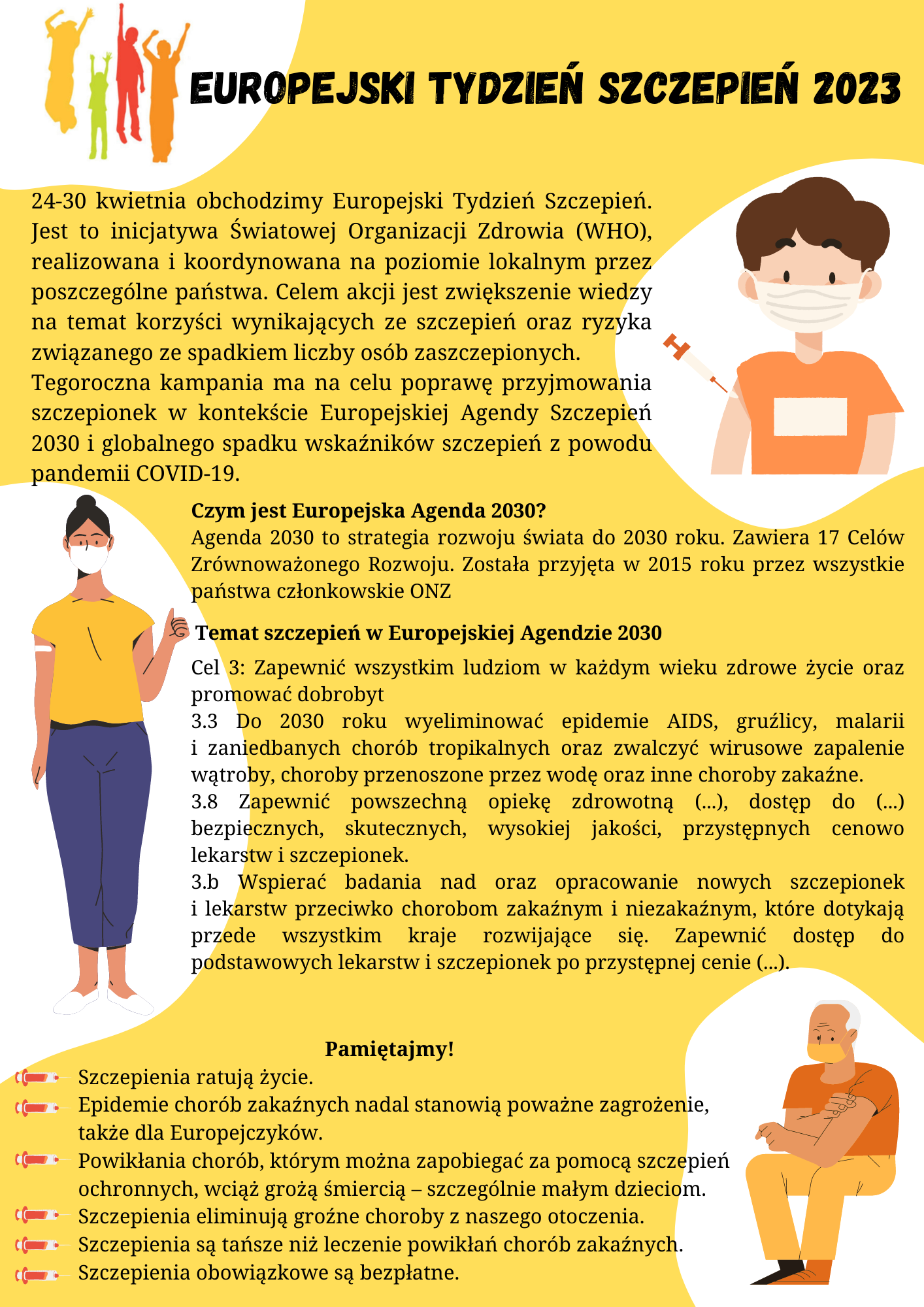 24-30 kwietnia obchodzimy Europejski Tydzień Szczepień. Jest to inicjatywa Światowej Organizacji Zdrowia (WHO), realizowana i koordynowana na poziomie lokalnym przez poszczególne państwa. Celem akcji jest zwiększenie wiedzy na temat korzyści wynikających ze szczepień oraz ryzyka związanego ze spadkiem osób zaszczepionych.